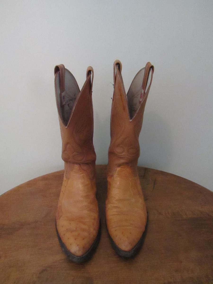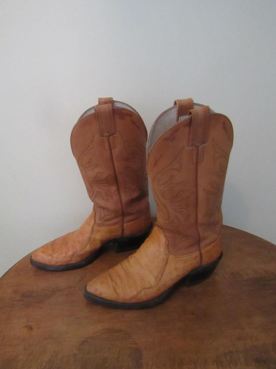 Olathe Osterich Skin Boots- Size 10D (#2). In used condition- please see all pictures.