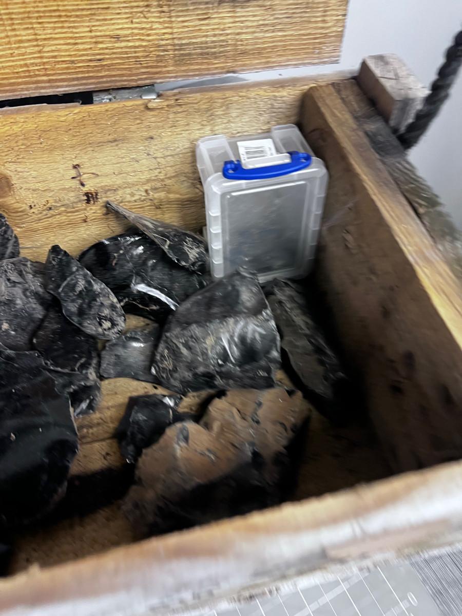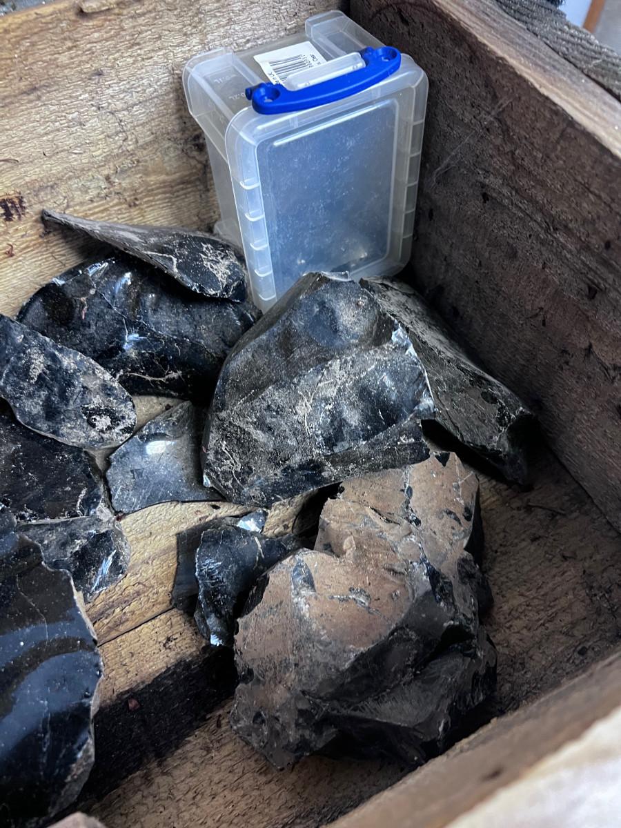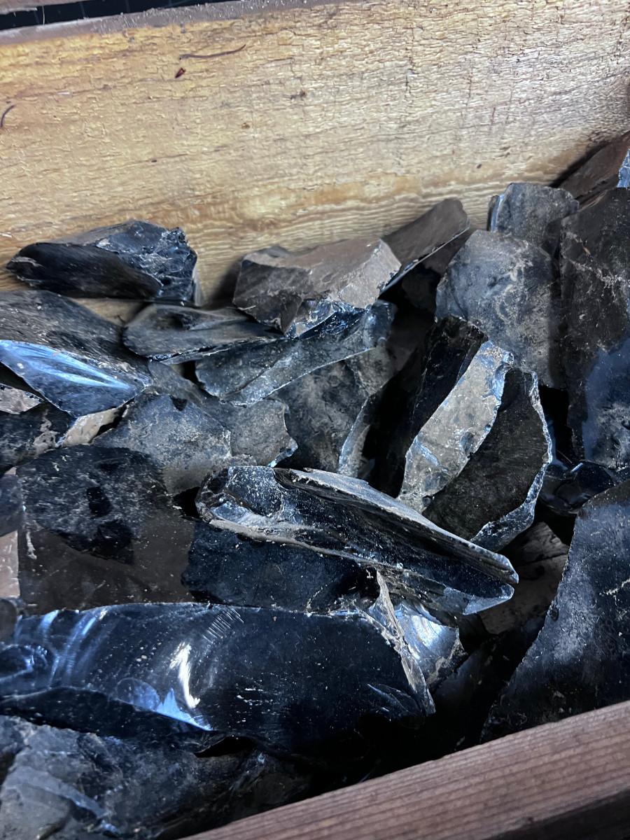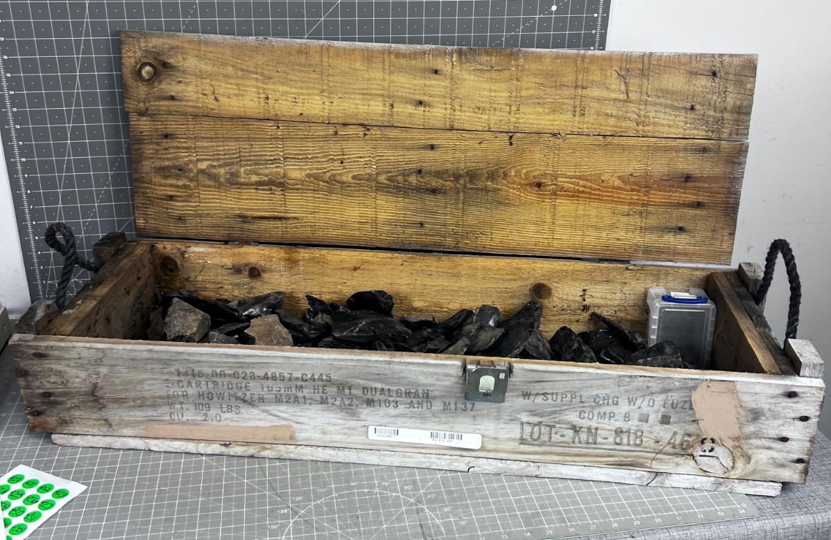 Old AMMO Crate Complete Full of Rock Hound OBSIDIAN ROCKS