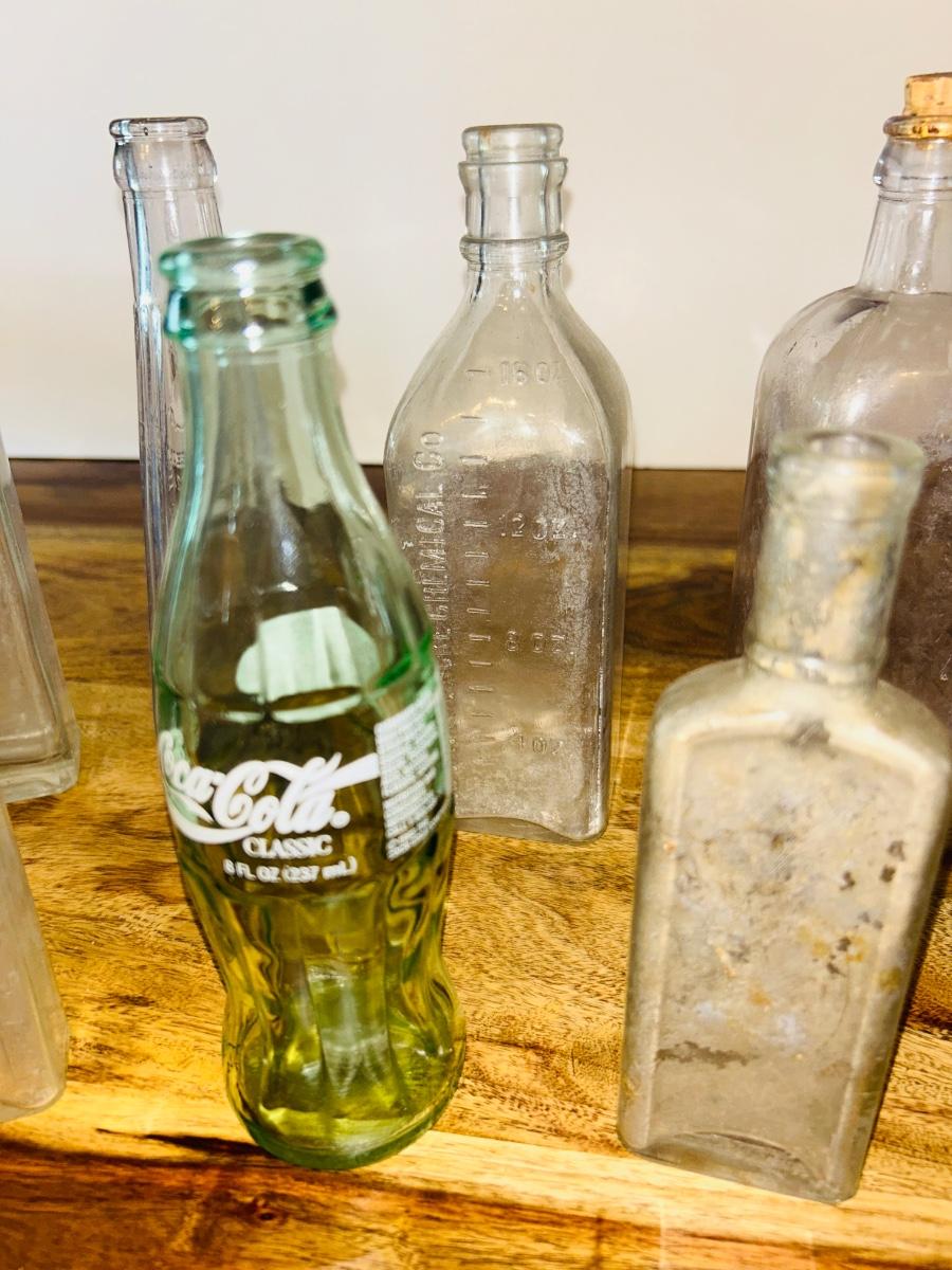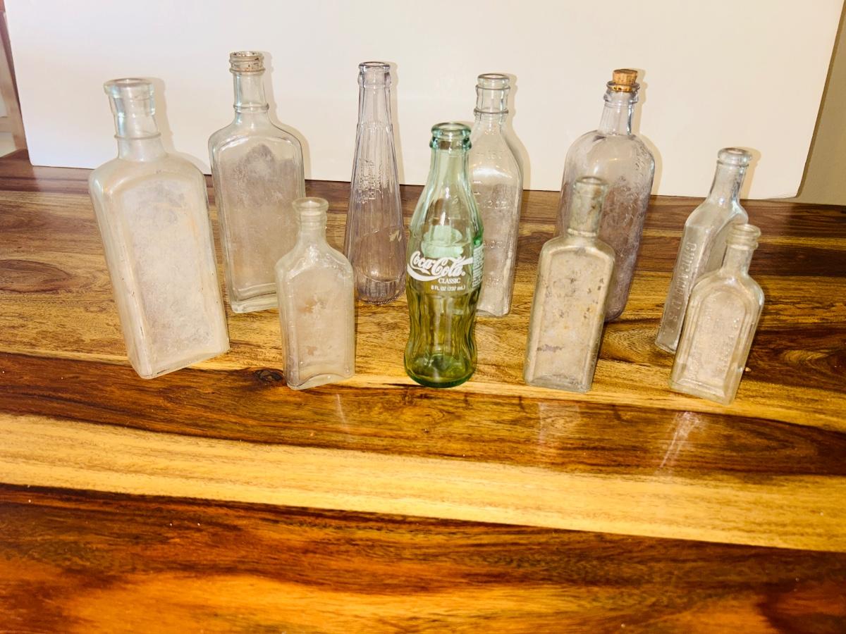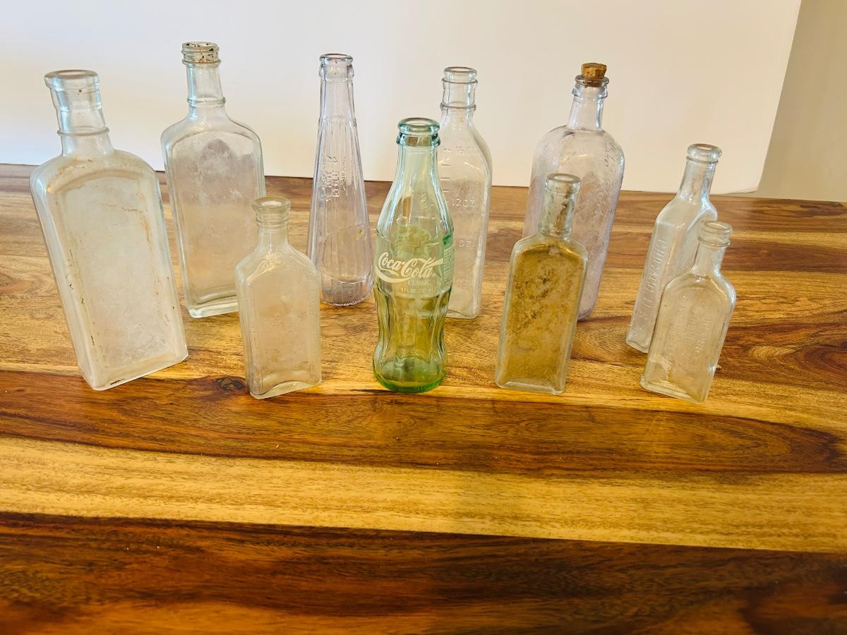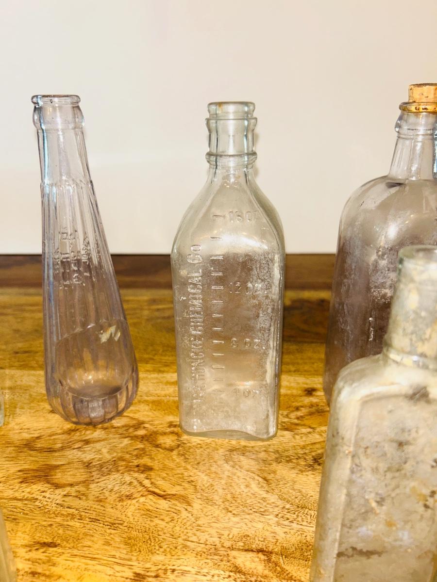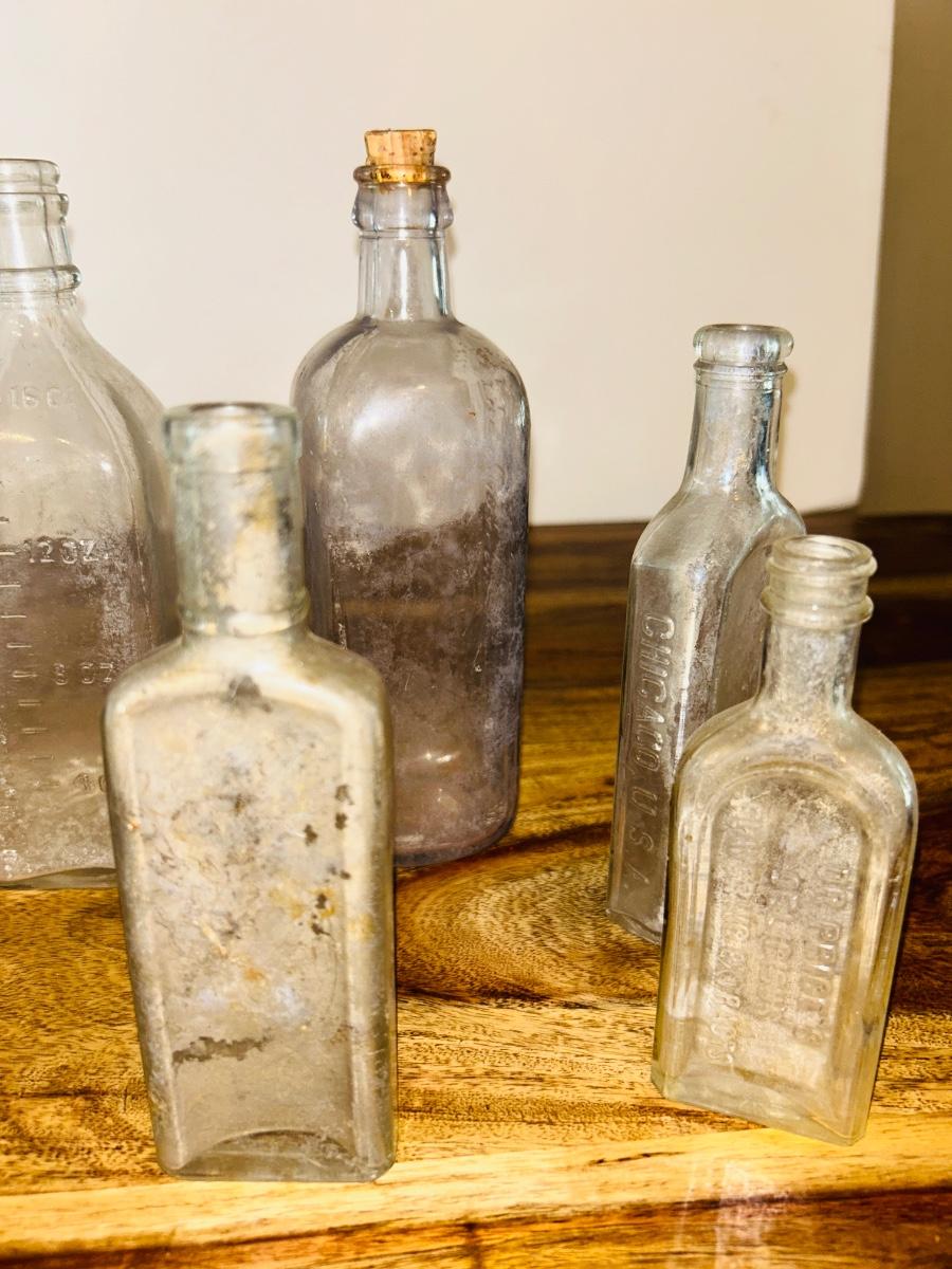OLD APOTHECARY AND OTHER GLASS BOTTLES