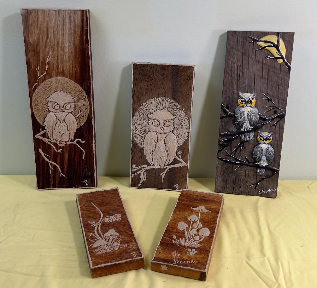 Old Barn Wood? Owls! Interesting! (5) Items.
