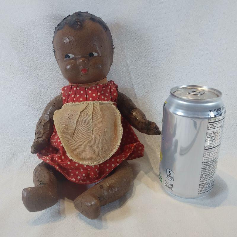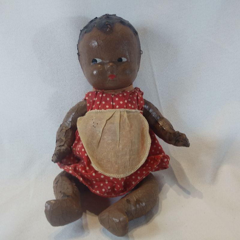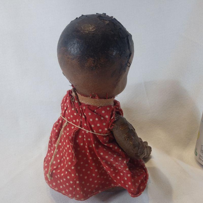 This Depression-era doll is a real find. She is old, has had tough life but has a cute little face. In rough condition, lots of chips and skin is crackled. Hoping someone will adopt her.