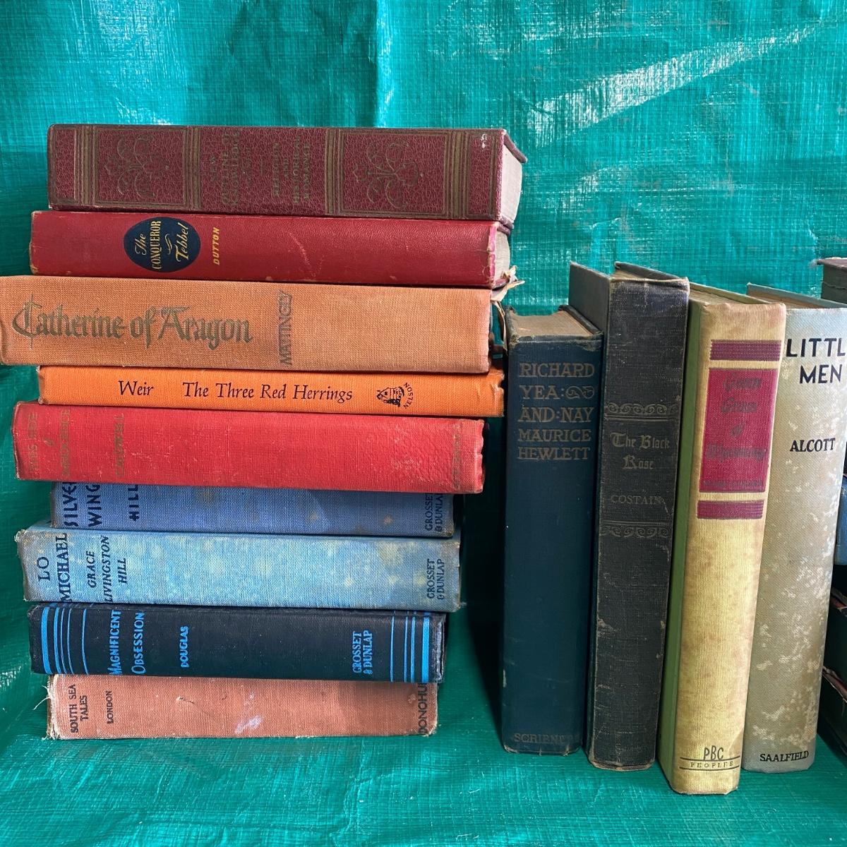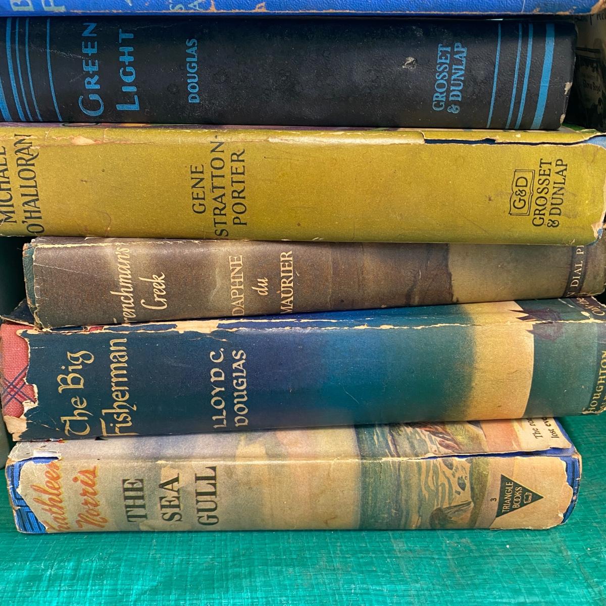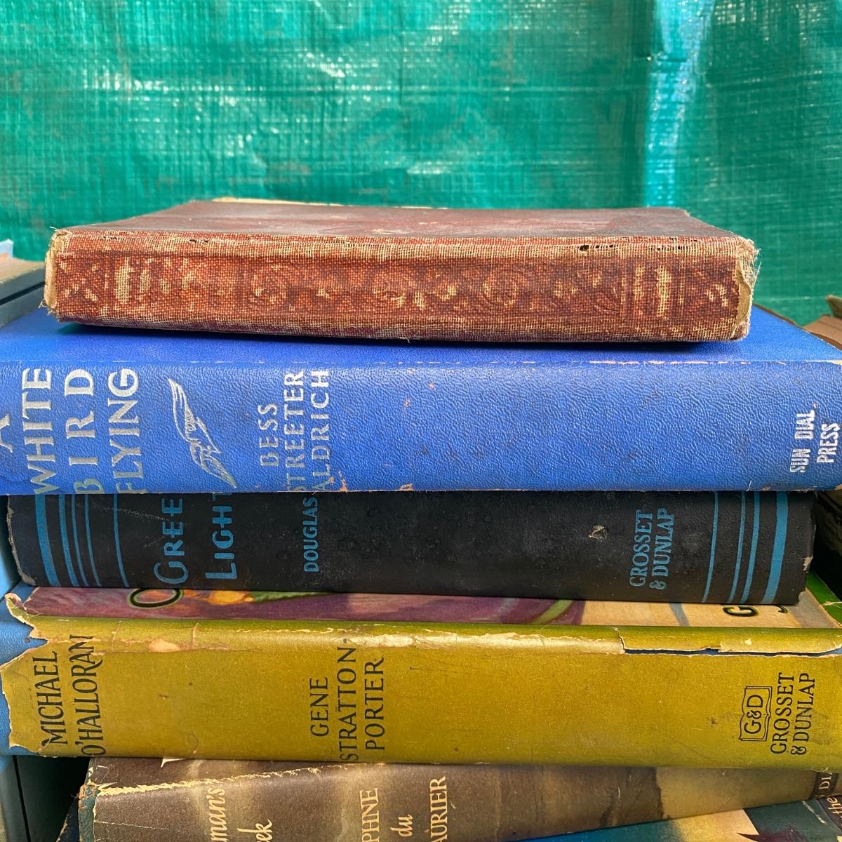 Lot of old books. Includes a 1939 edition of Wuthering Heights. Some other titles include Shakespeare and Uncle Toms Cabin. Most are not in very good condition with tears and yellowing pages, but this is common with age . Shipping available