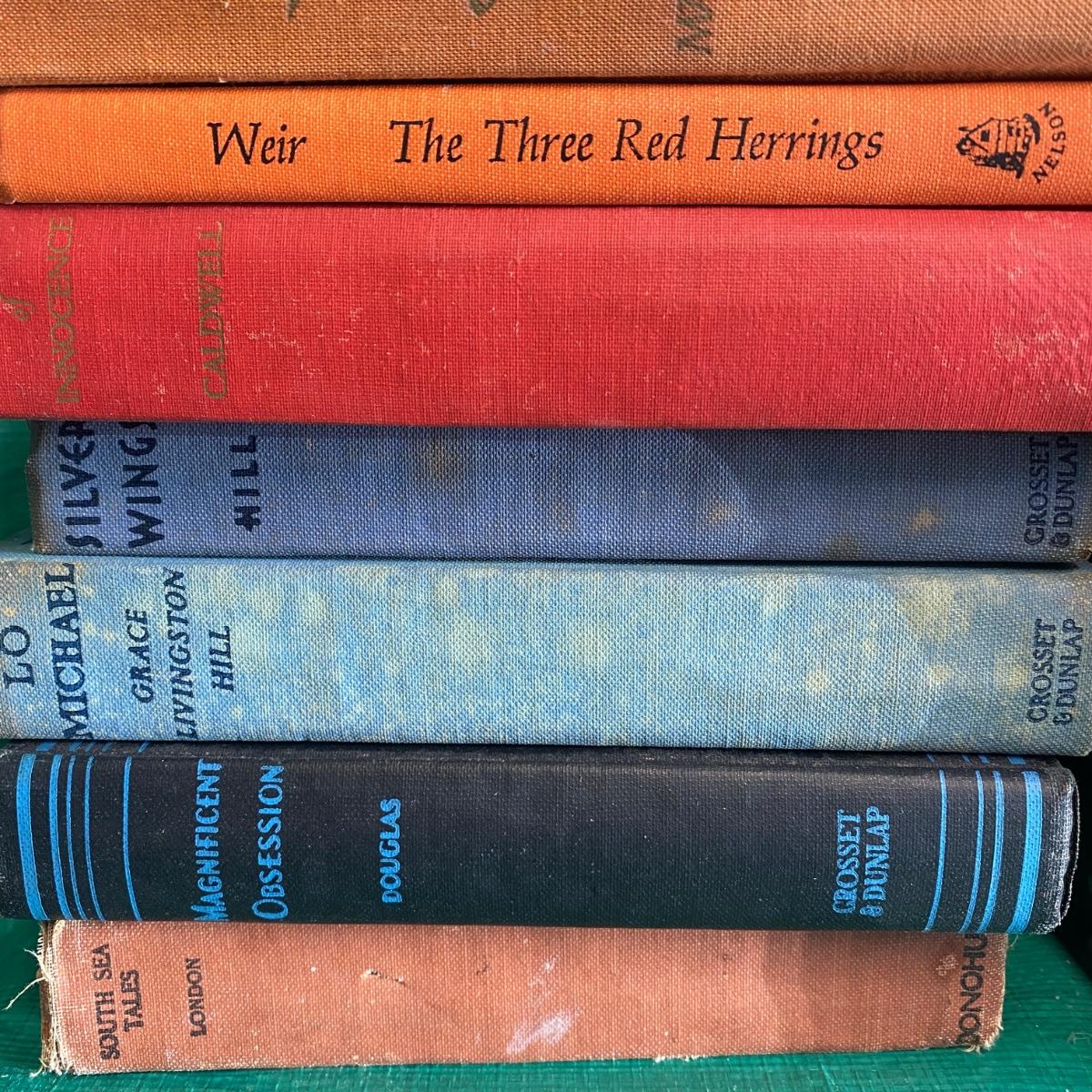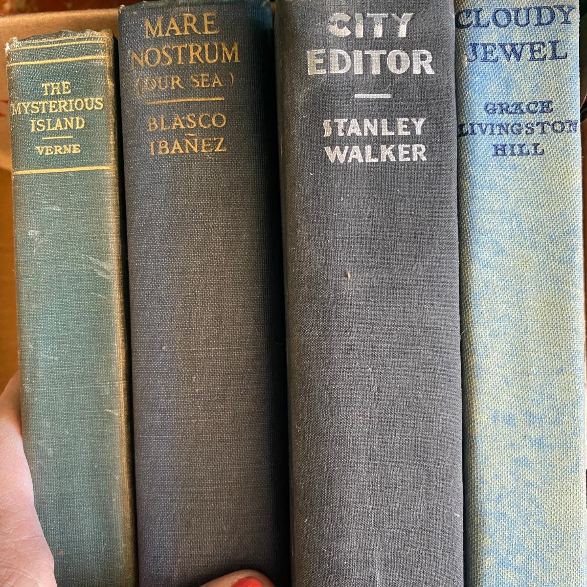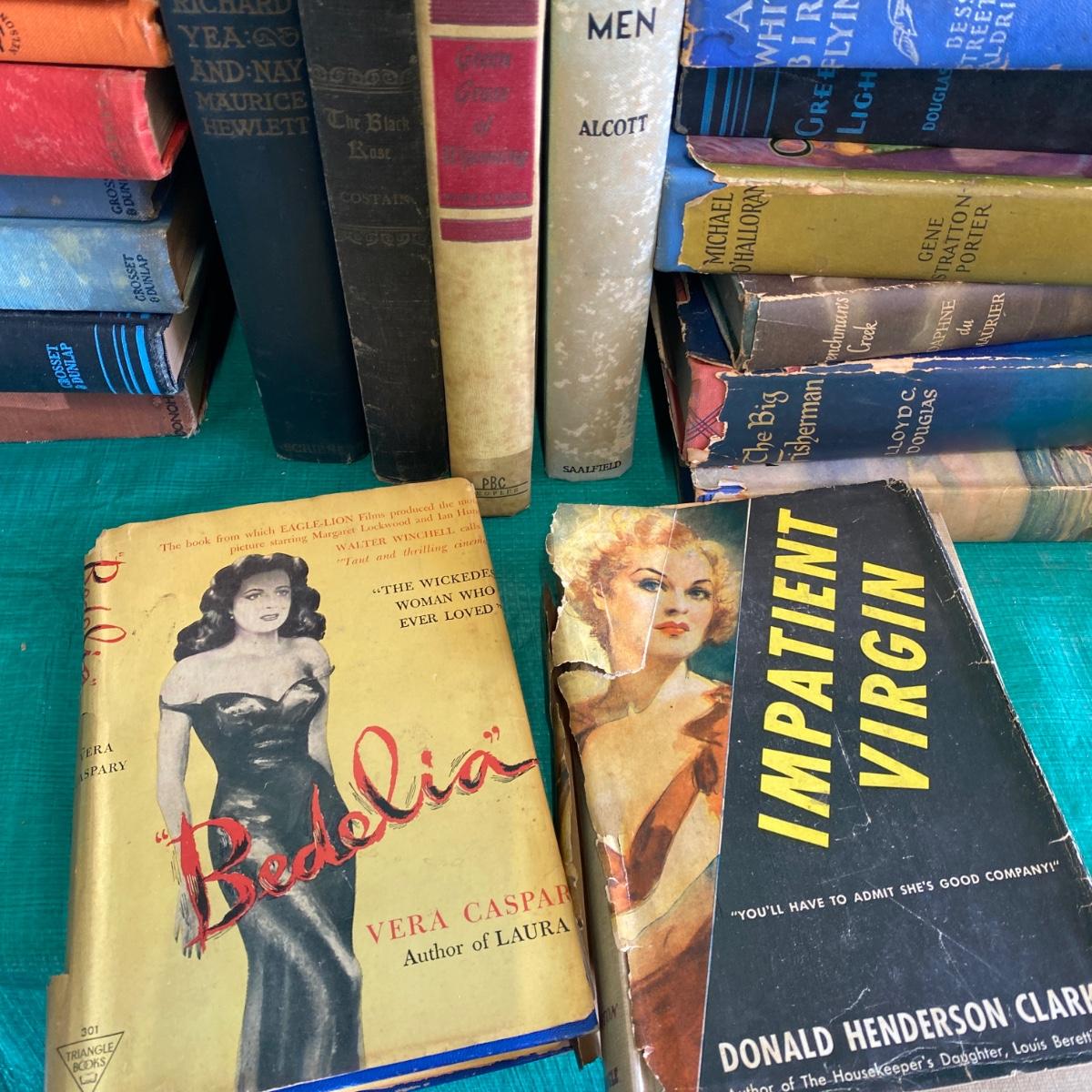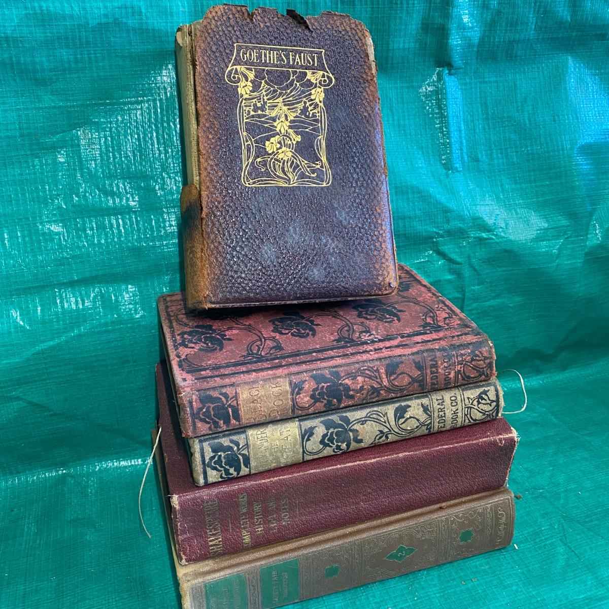 Lot of old books. Includes a 1939 edition of Wuthering Heights. Some other titles include Shakespeare and Uncle Toms Cabin. Most are not in very good condition with tears and yellowing pages, but this is common with age . Shipping available