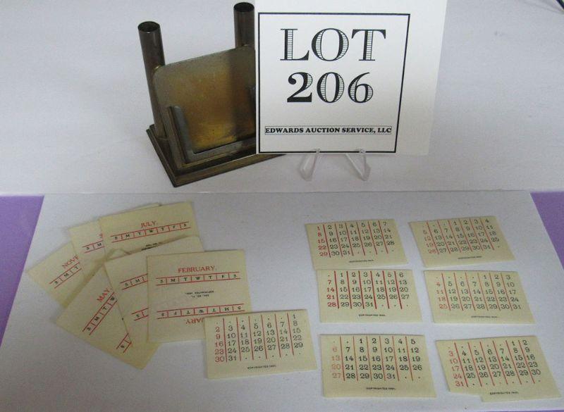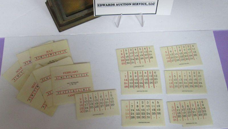 Old Bradley & Hubbard Perputal Calender & Pen Holder, Brass & Thin Celluloid Cards Complete