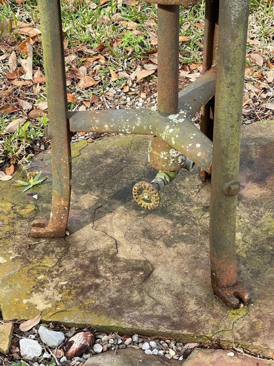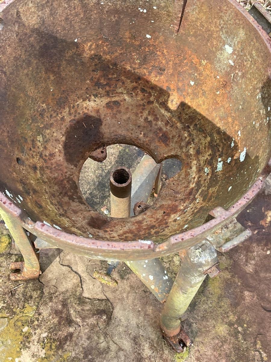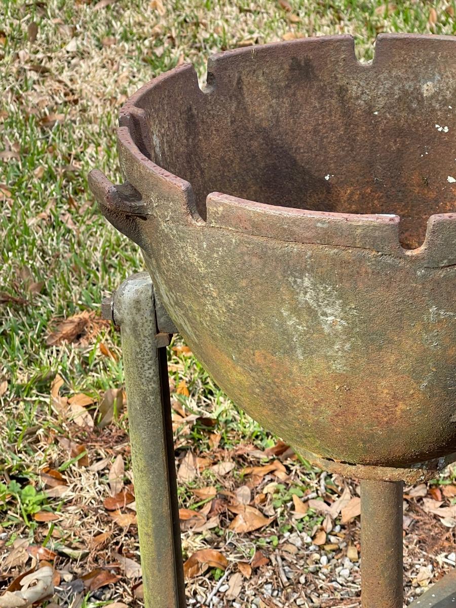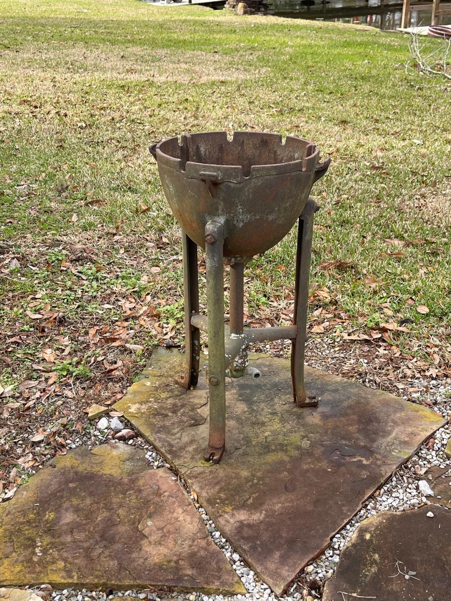 This old cast iron burner has been outside and used a few time years ago. It may need some TLC. It’s extremely heavy. It’s 29” tall and 15” Round