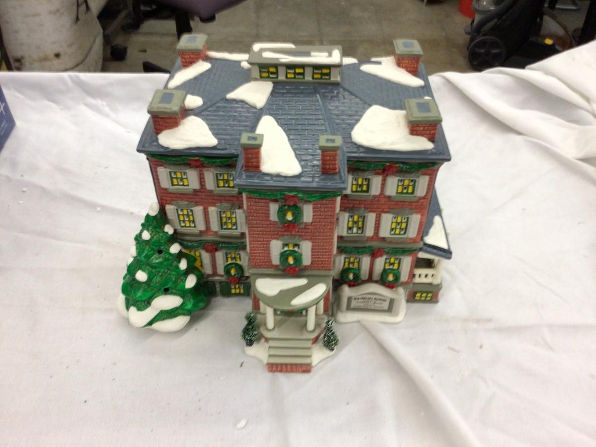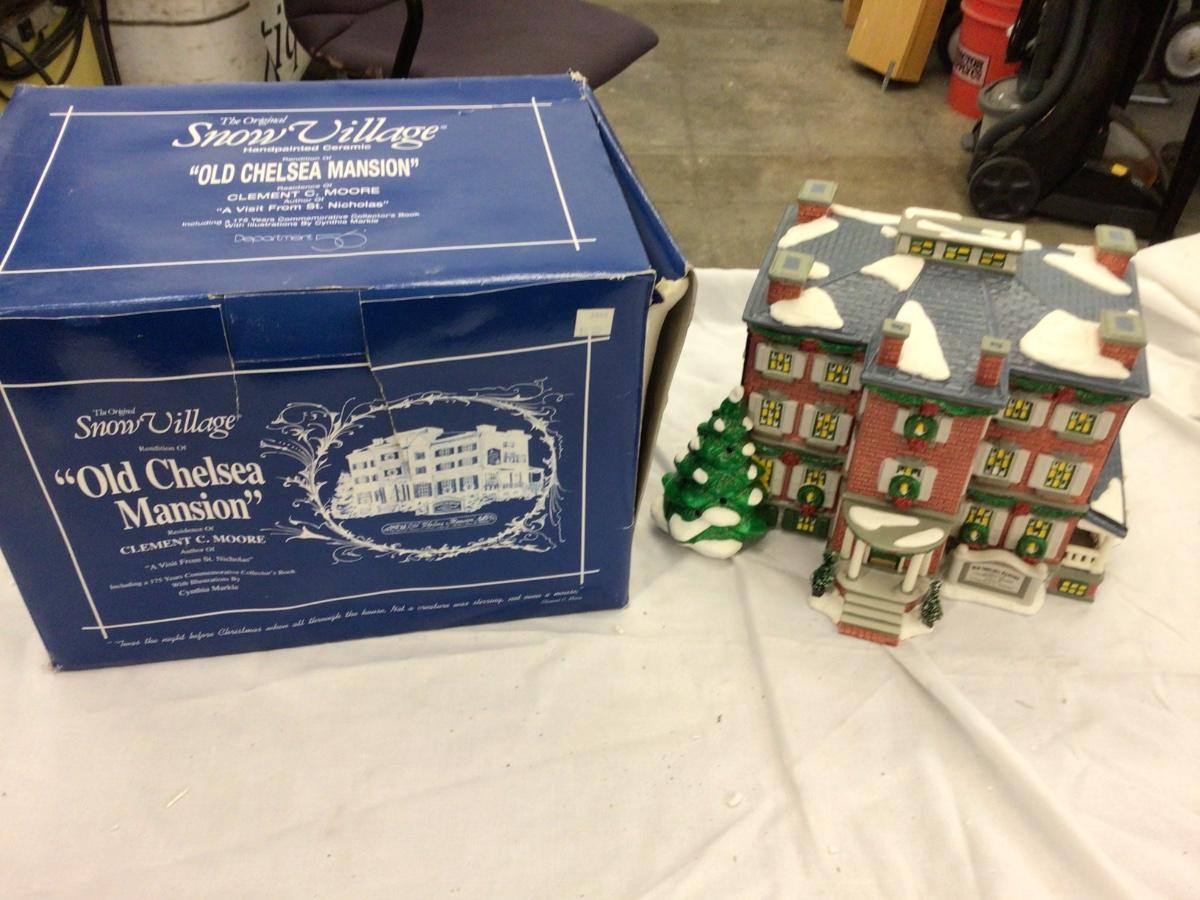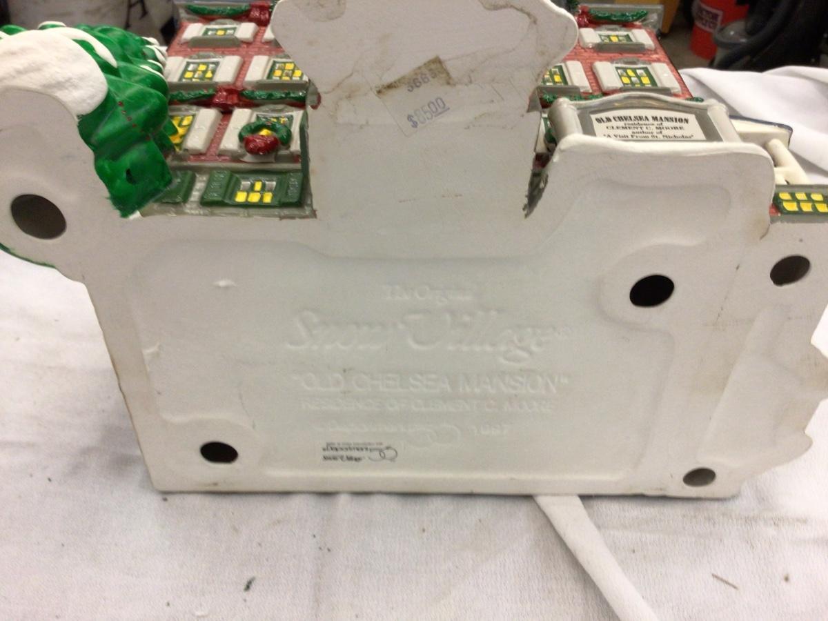 Old Chelsea Mansion Dept. 56 Snow Village has box but it does have damage also has light.
