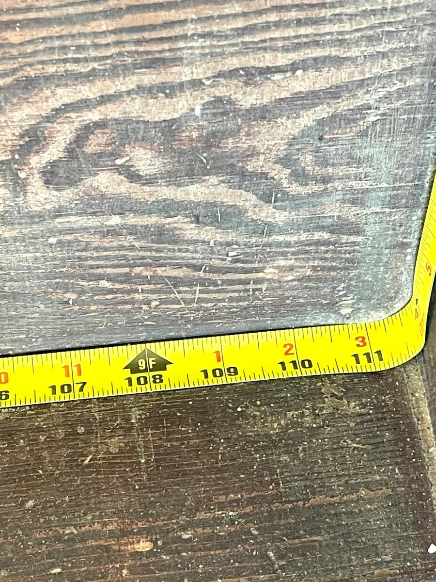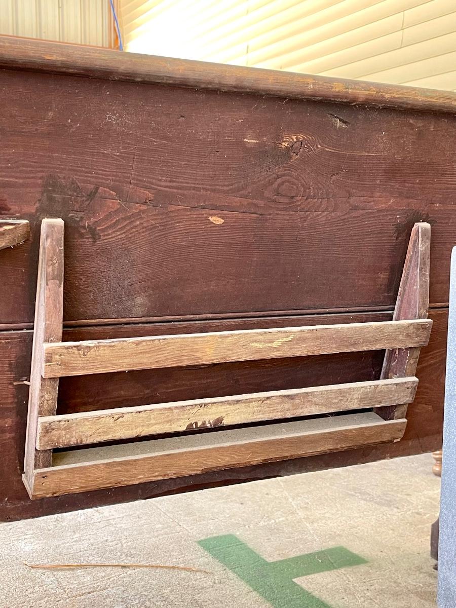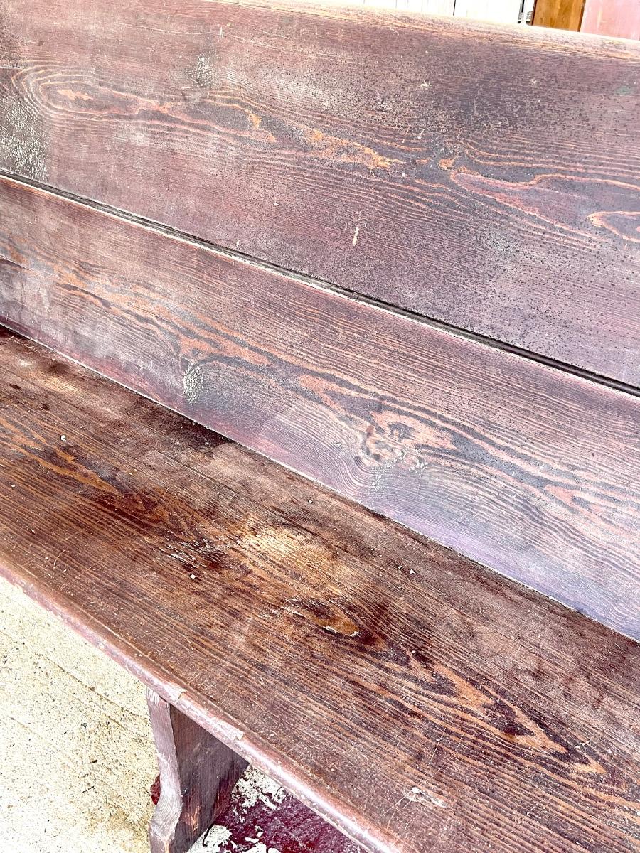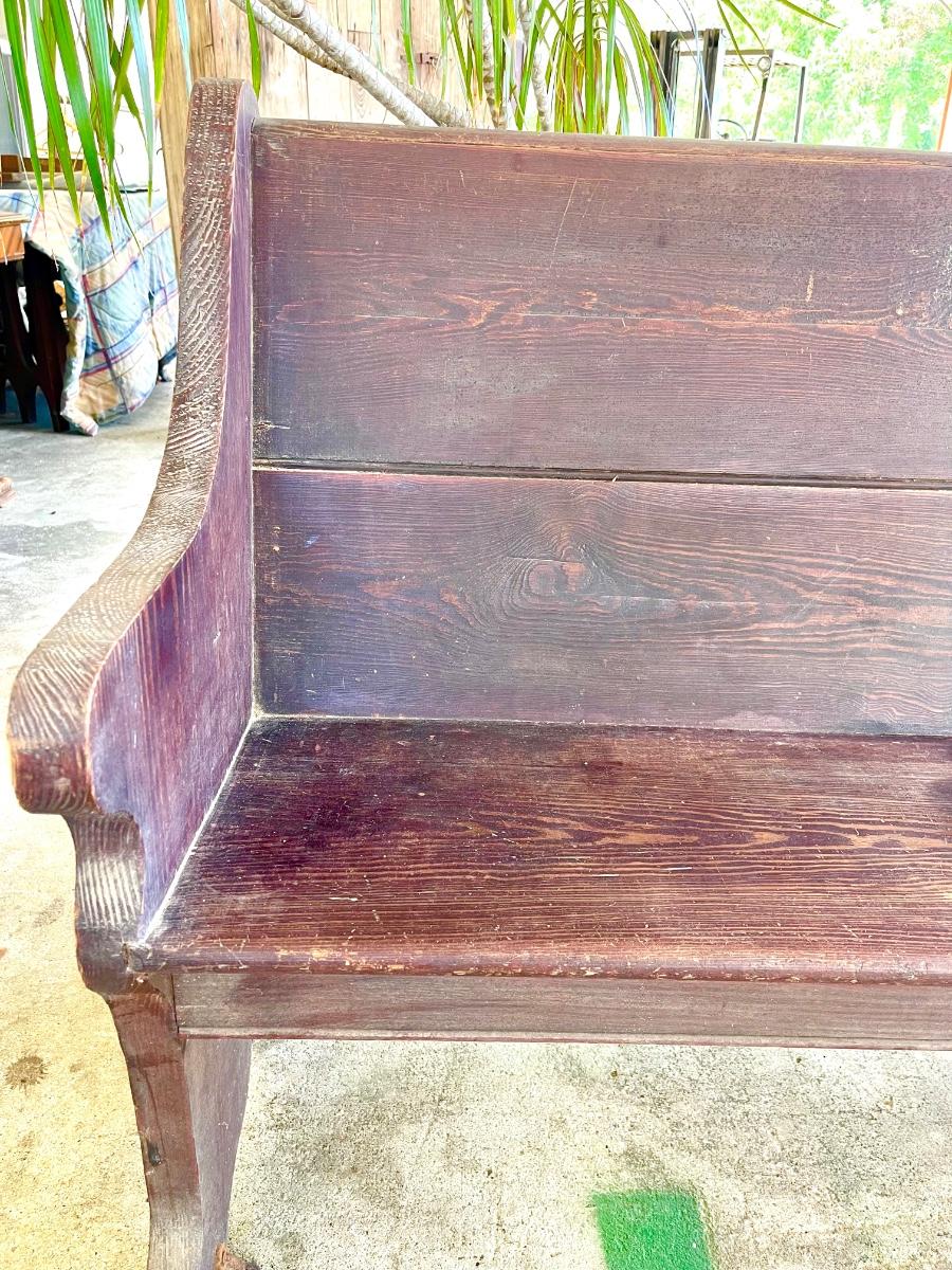 What a fantastic piece for the porch! Pew is in solid condition. It is 9 feet long. One end is painted white as pictured. There is slight wood damage on the bottom of one side as pictured. These are incredibly hard to find these days! If you have a large front porch area. This would be amazing full of mums or poinsettias! This could be such a great seasonal decor piece with plenty of room for sitting!