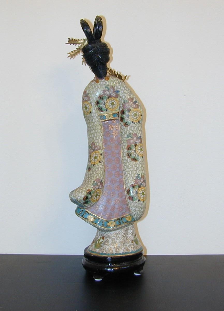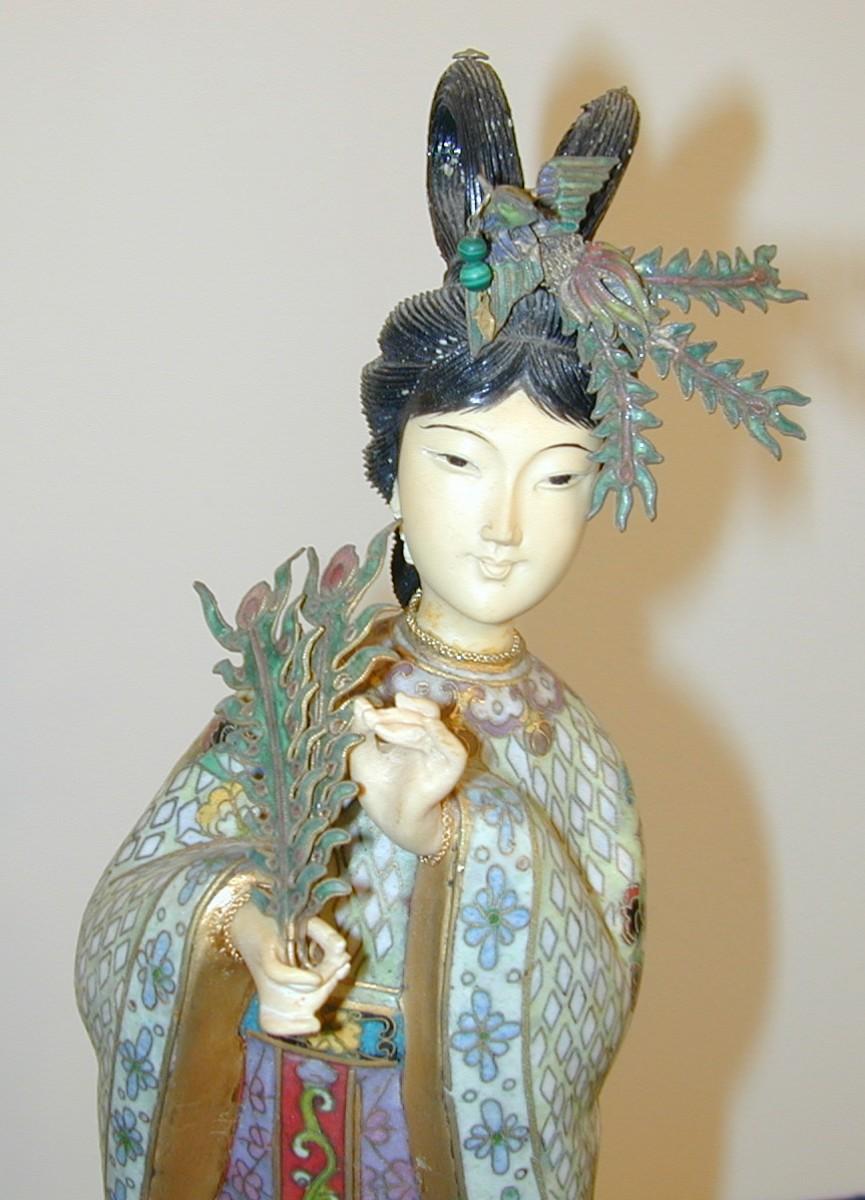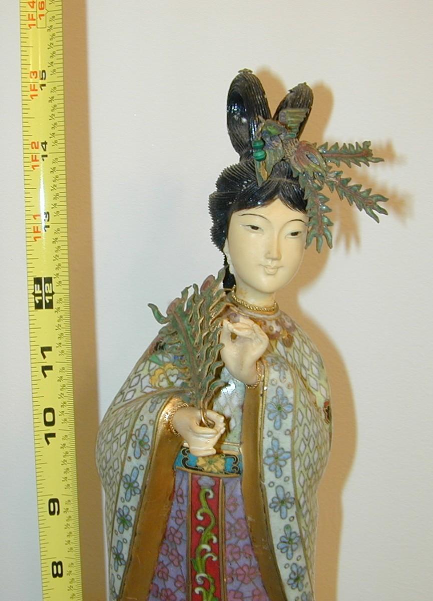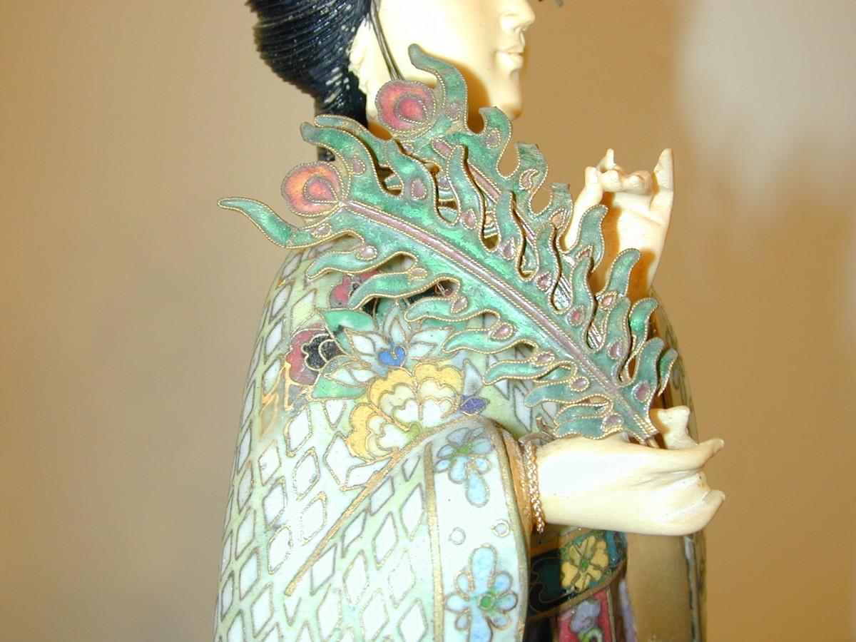 Old Cloisonne & Enamel Woman With Bird Hair Piece Holding Leaves - Celluloid Face & Hands Lot