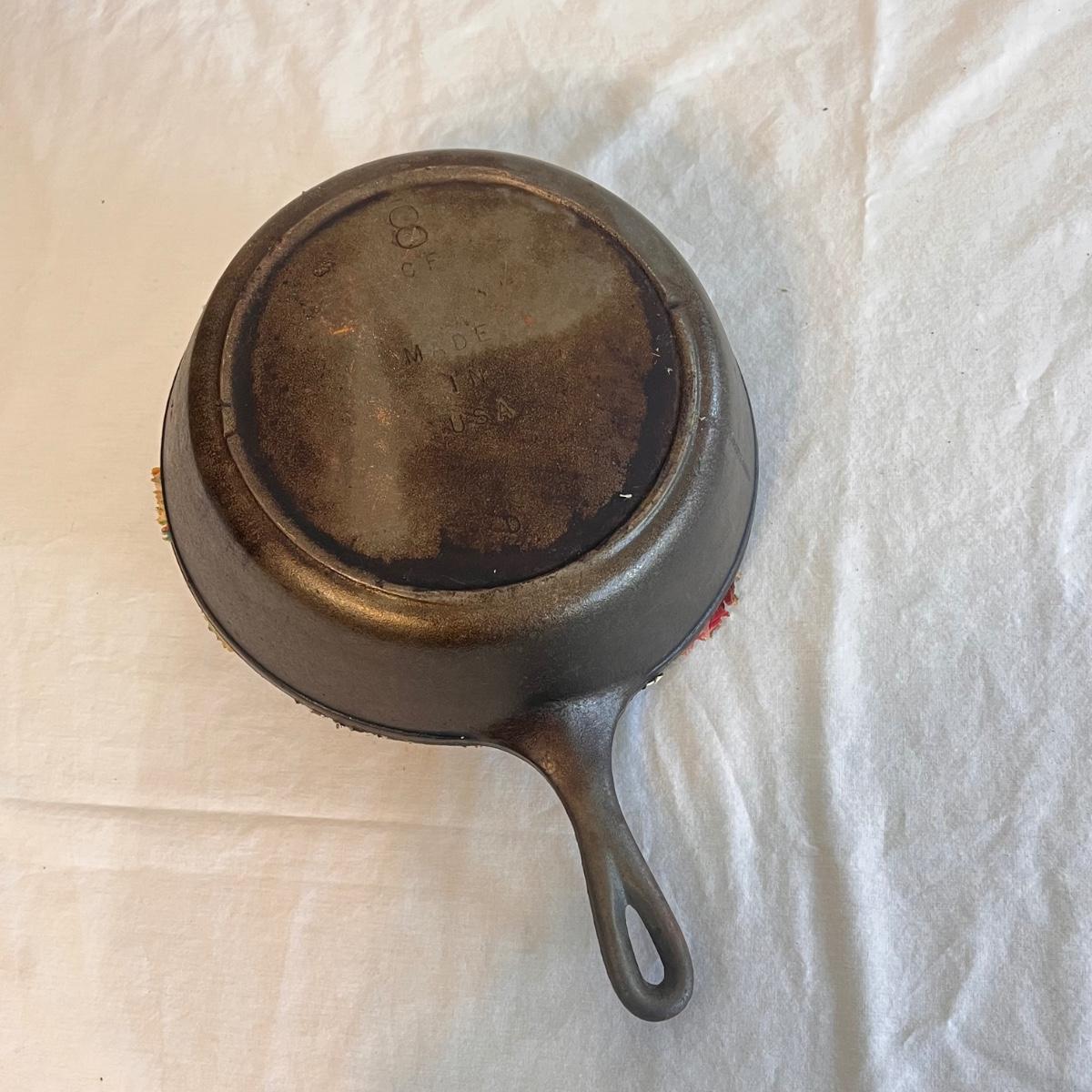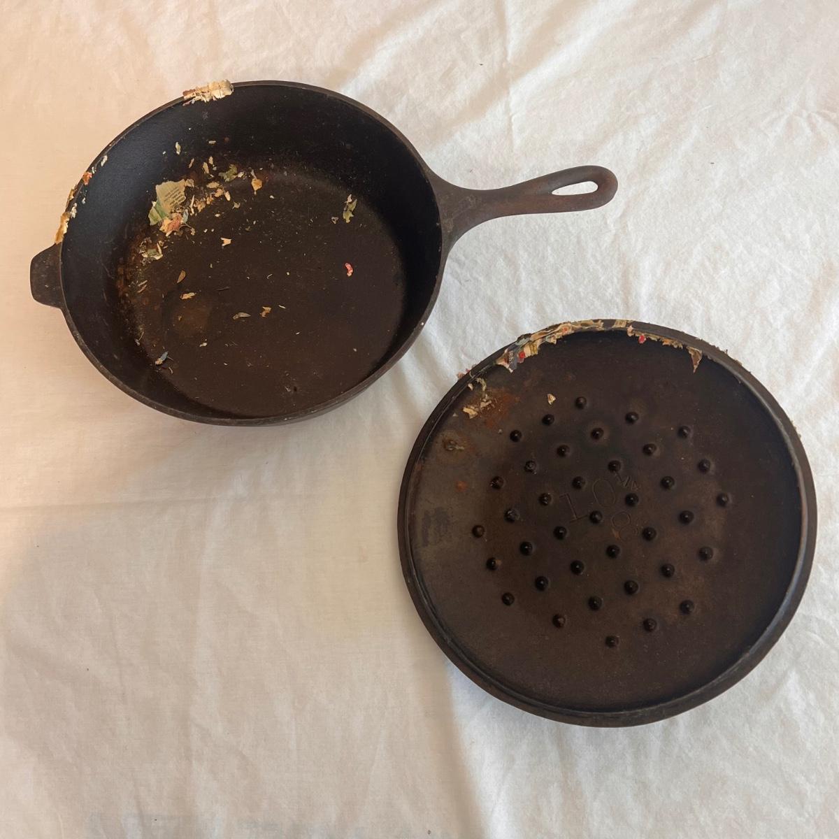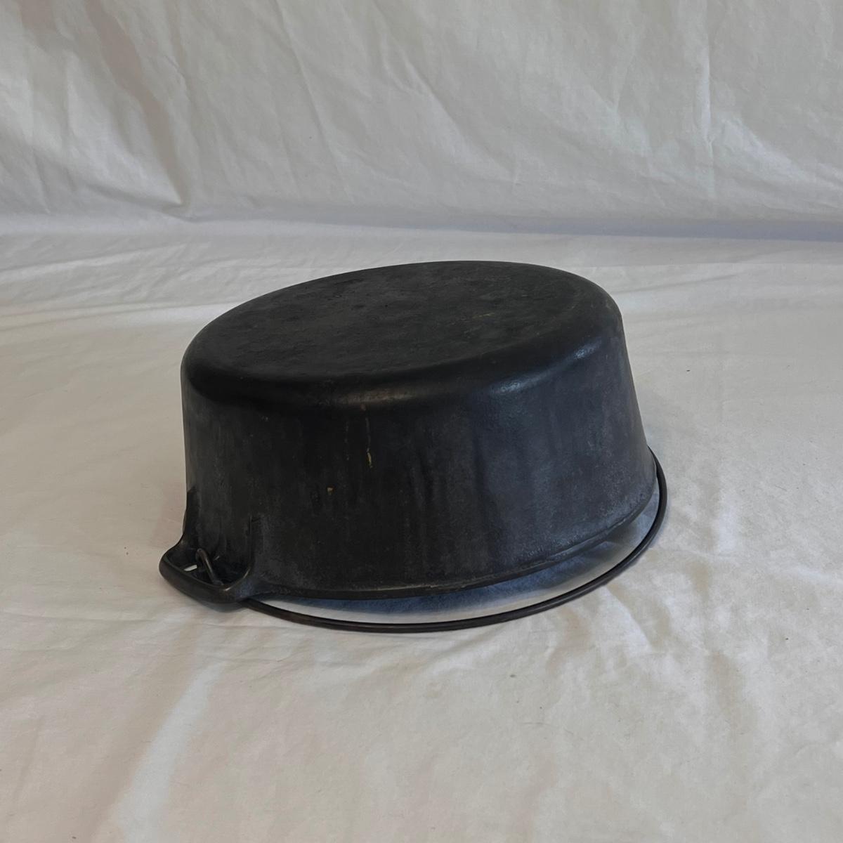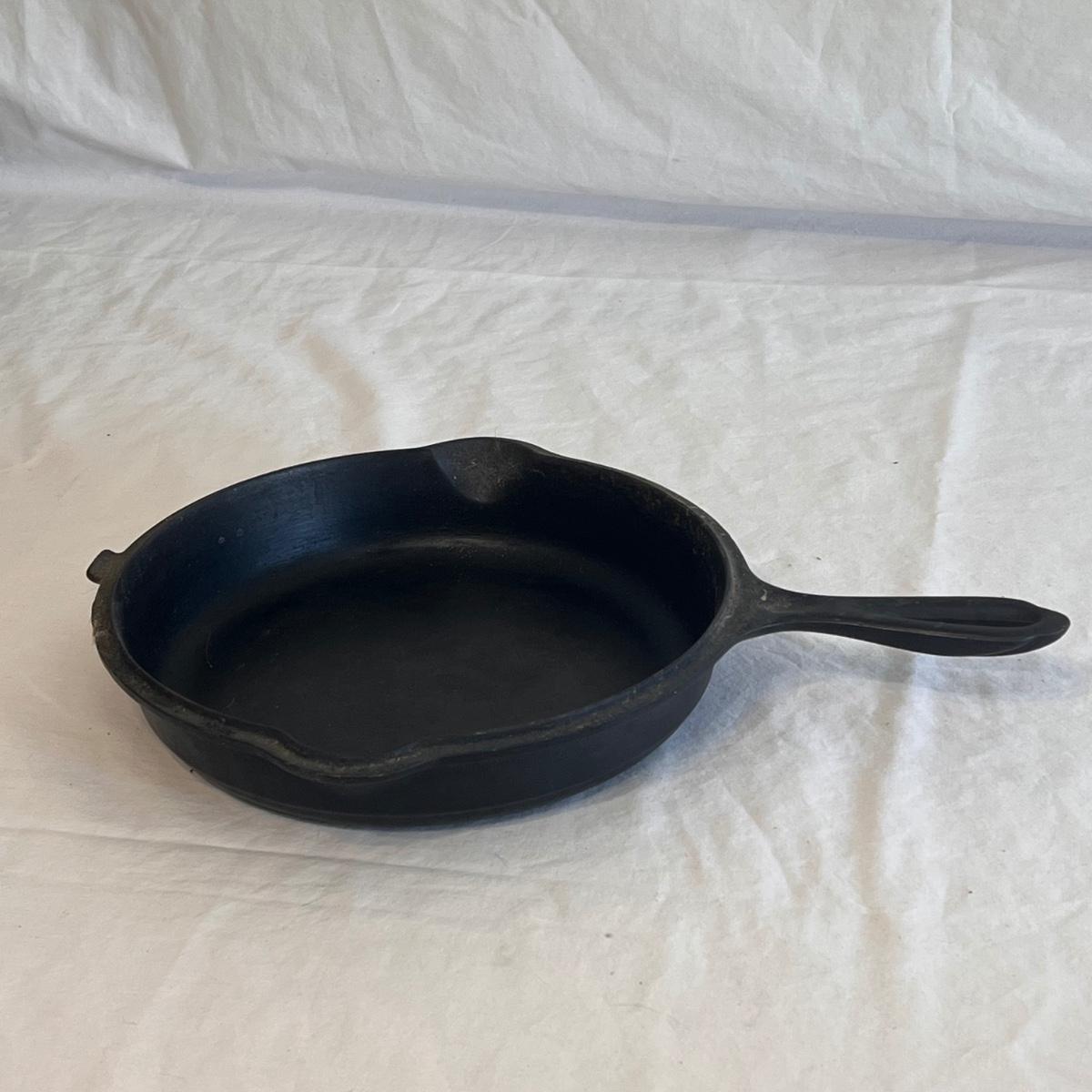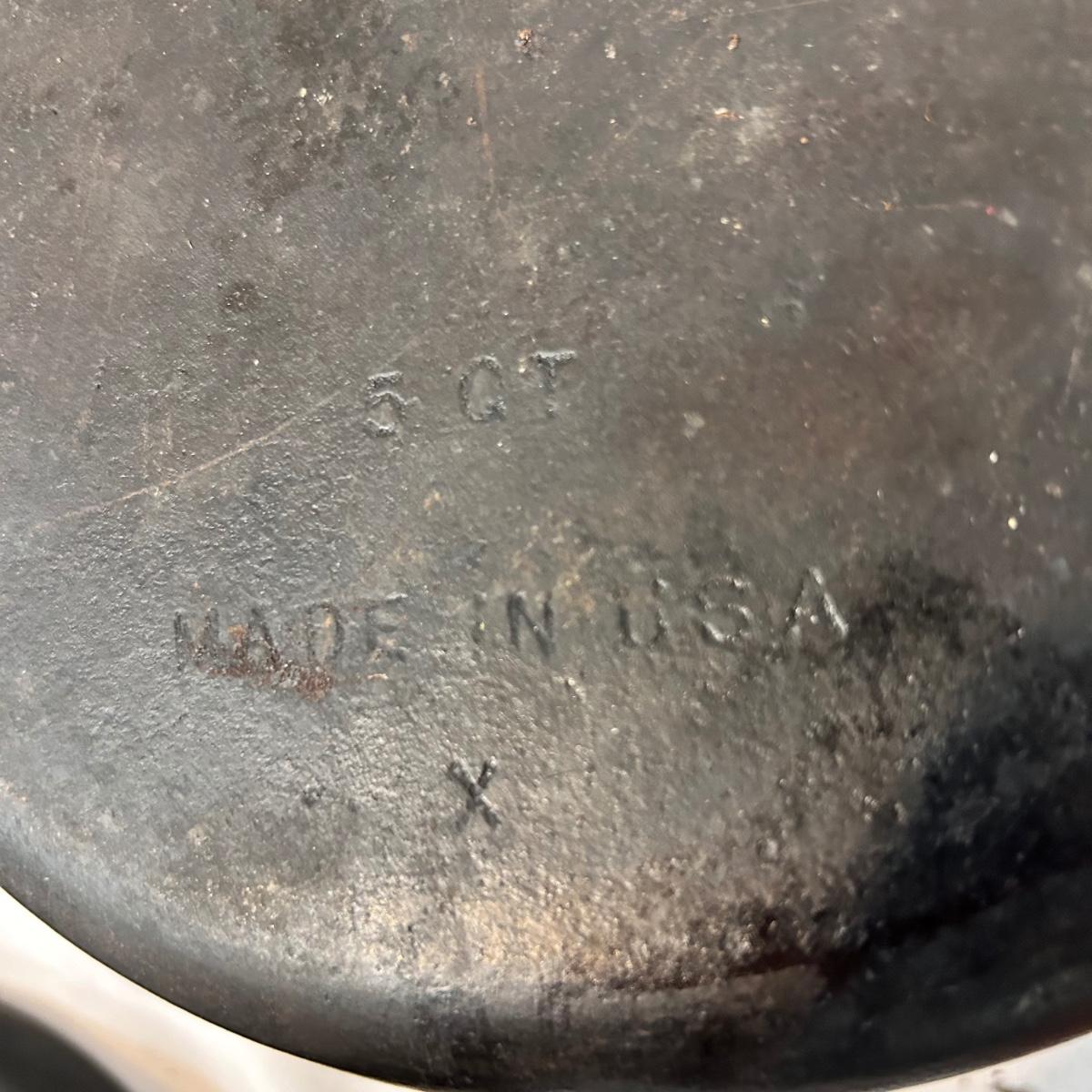 This collection includes three cast iron skillets in various sizes, Two are Wagner Ware. one large soup pot, and two deep pans (one includes a lid). The largest item measures 16” x 3”H. See photos for details. Shipping available. Shipping can be costly. We suggest contacting our preferred local shipping provider, Postage Express, with dimensions and getting an estimate before bidding: (828) 670-5501 or shipping@postageexpressnc.com