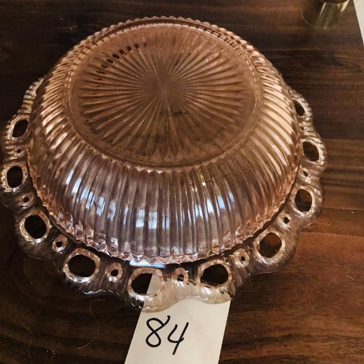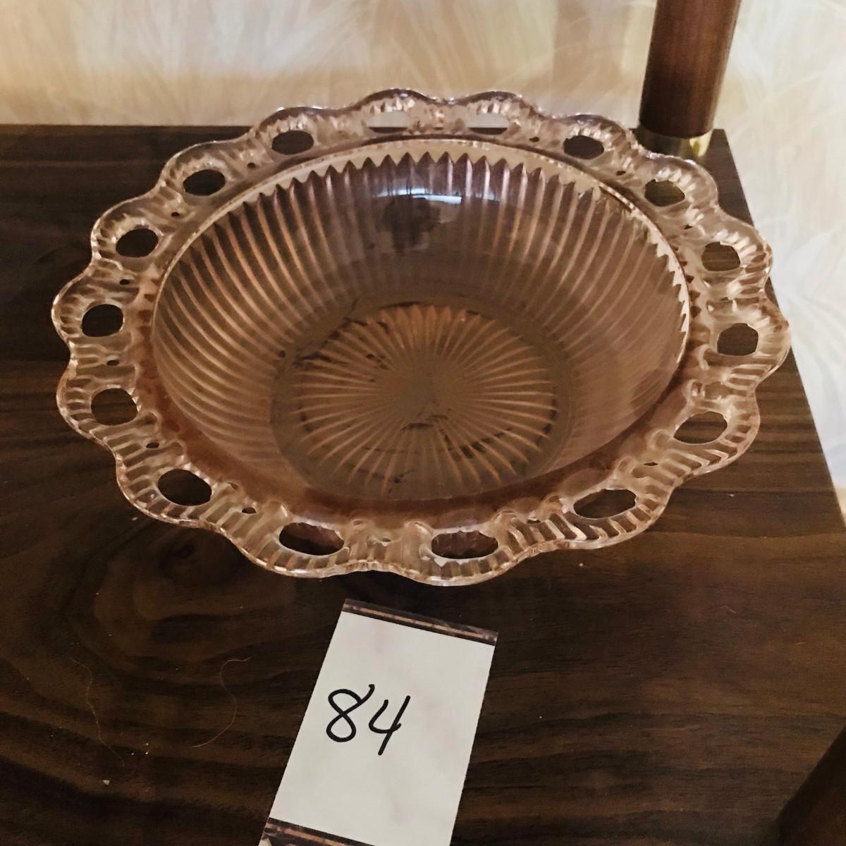 Old Colony Lace Edge Verticle Ribbed Round Bowl Pink Depression