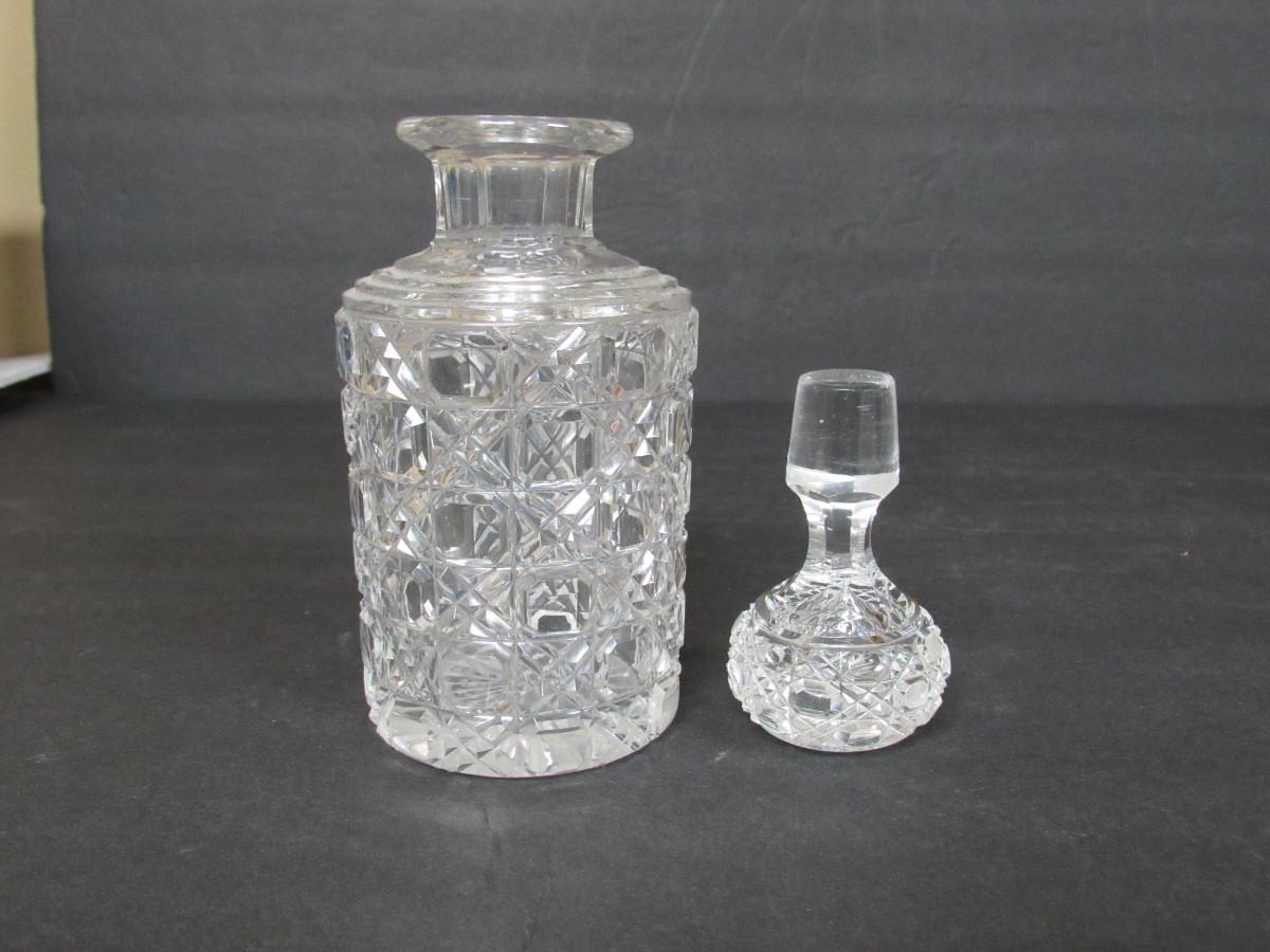 Old Cut Glass Large Perfume Bottle Matching Stopper