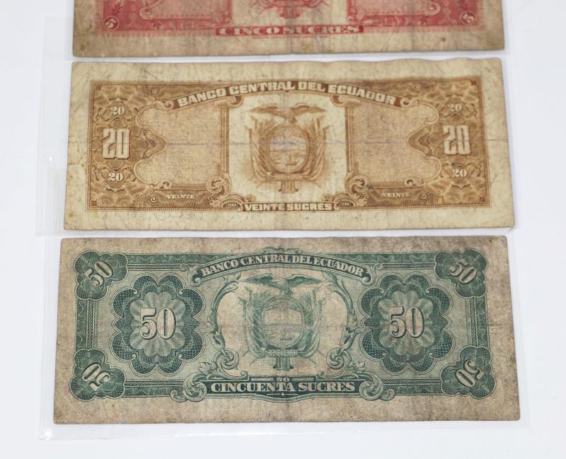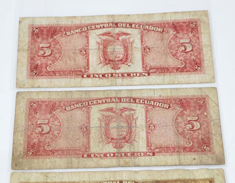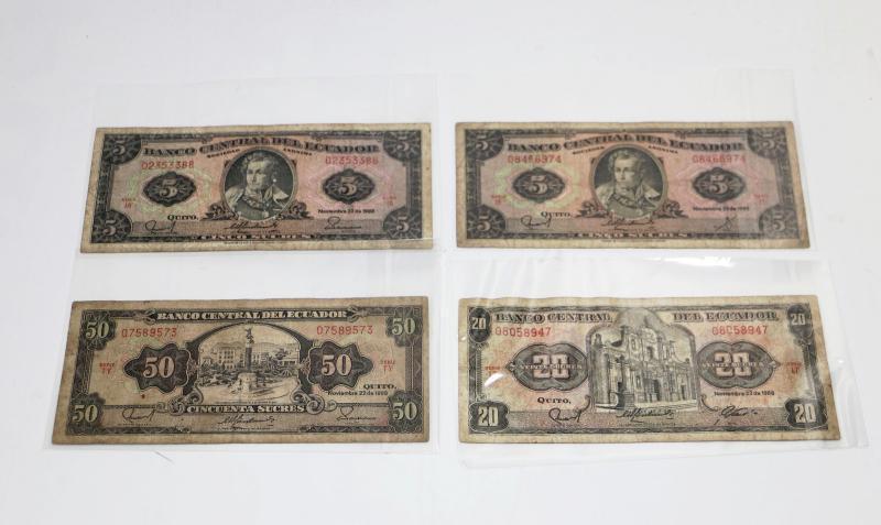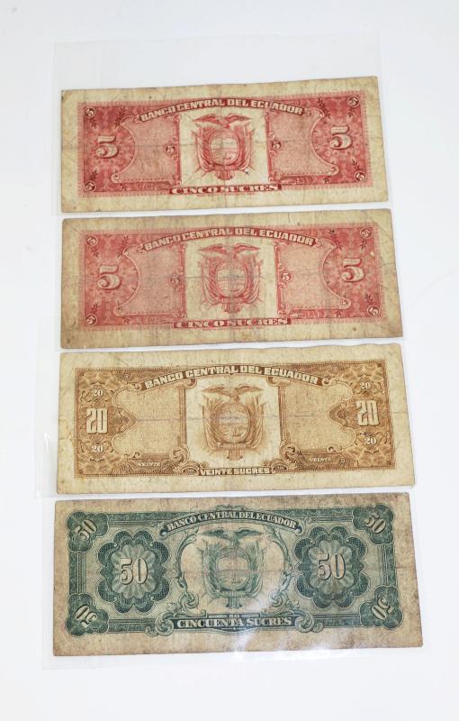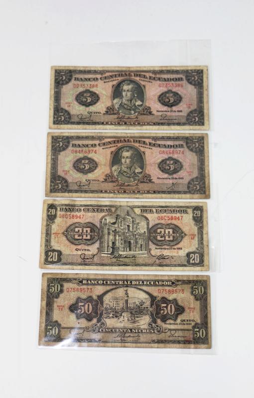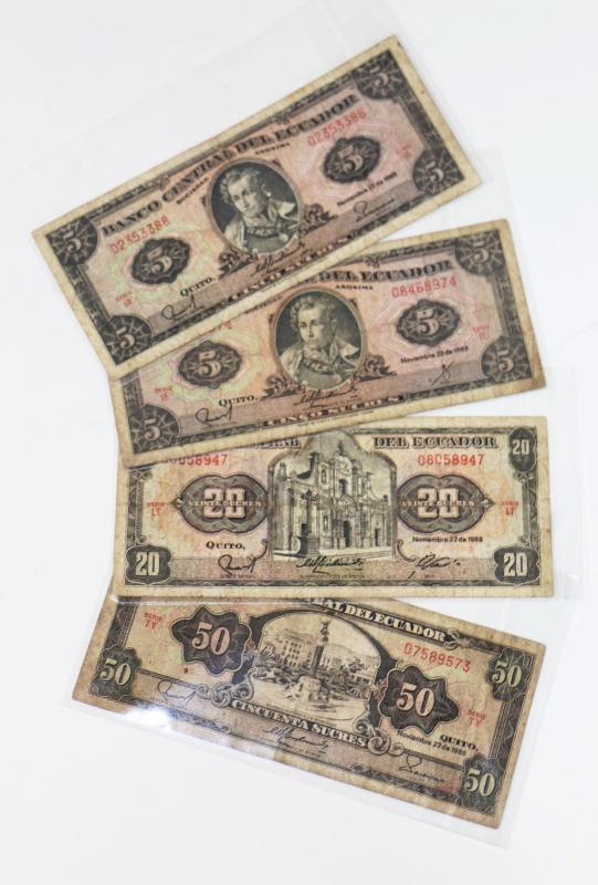 Old Ecuador Paper Money - 4 Banknotes Lot