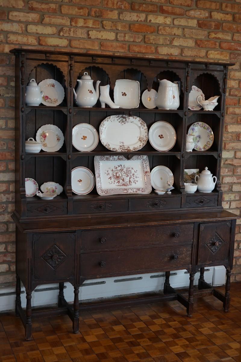 OLD ENGLISH STYLE STEP BACK CUPBOARD 1920'S