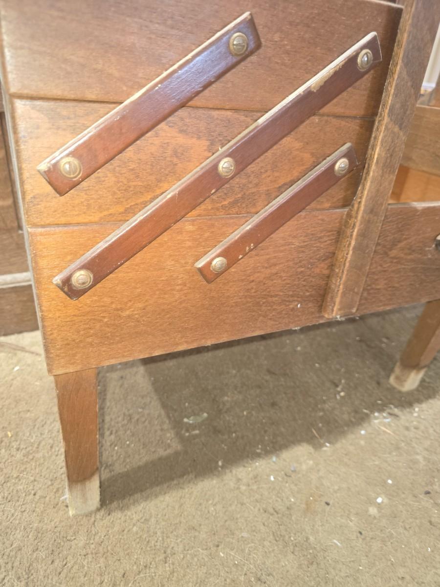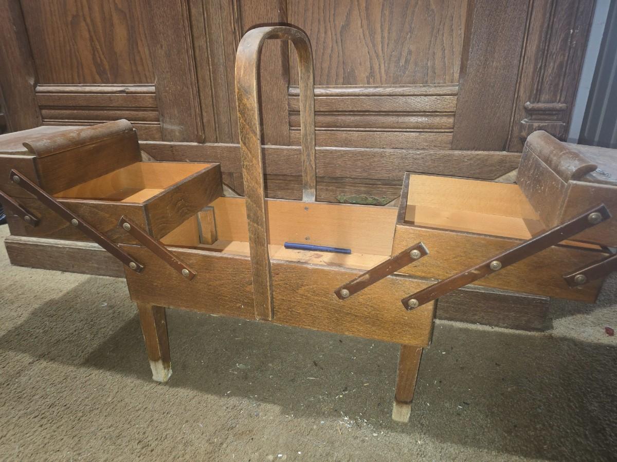 About 18 inches tall. And about 2 feet wide. Still functions. Wood has wear.