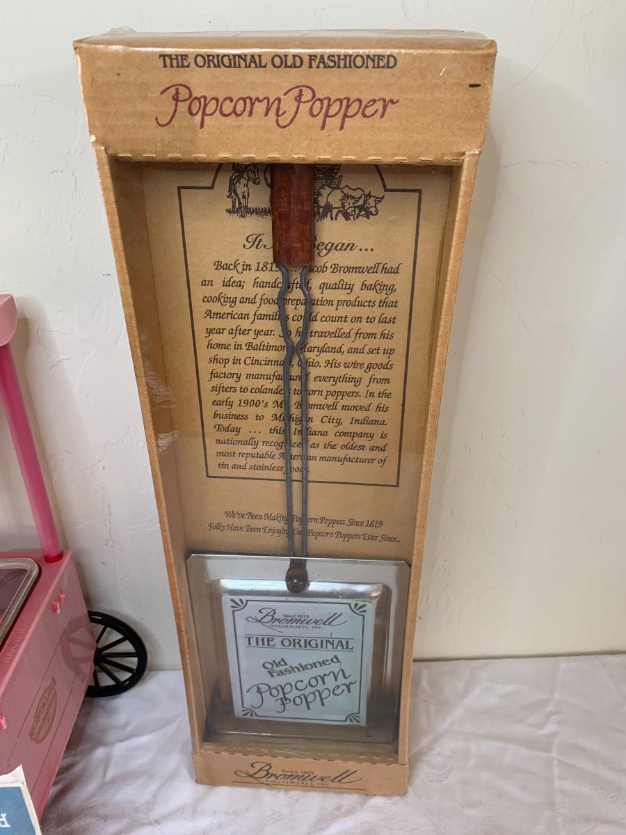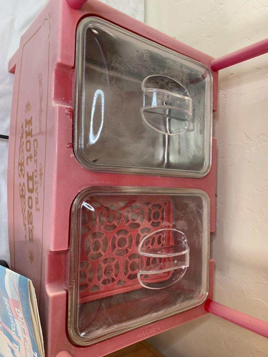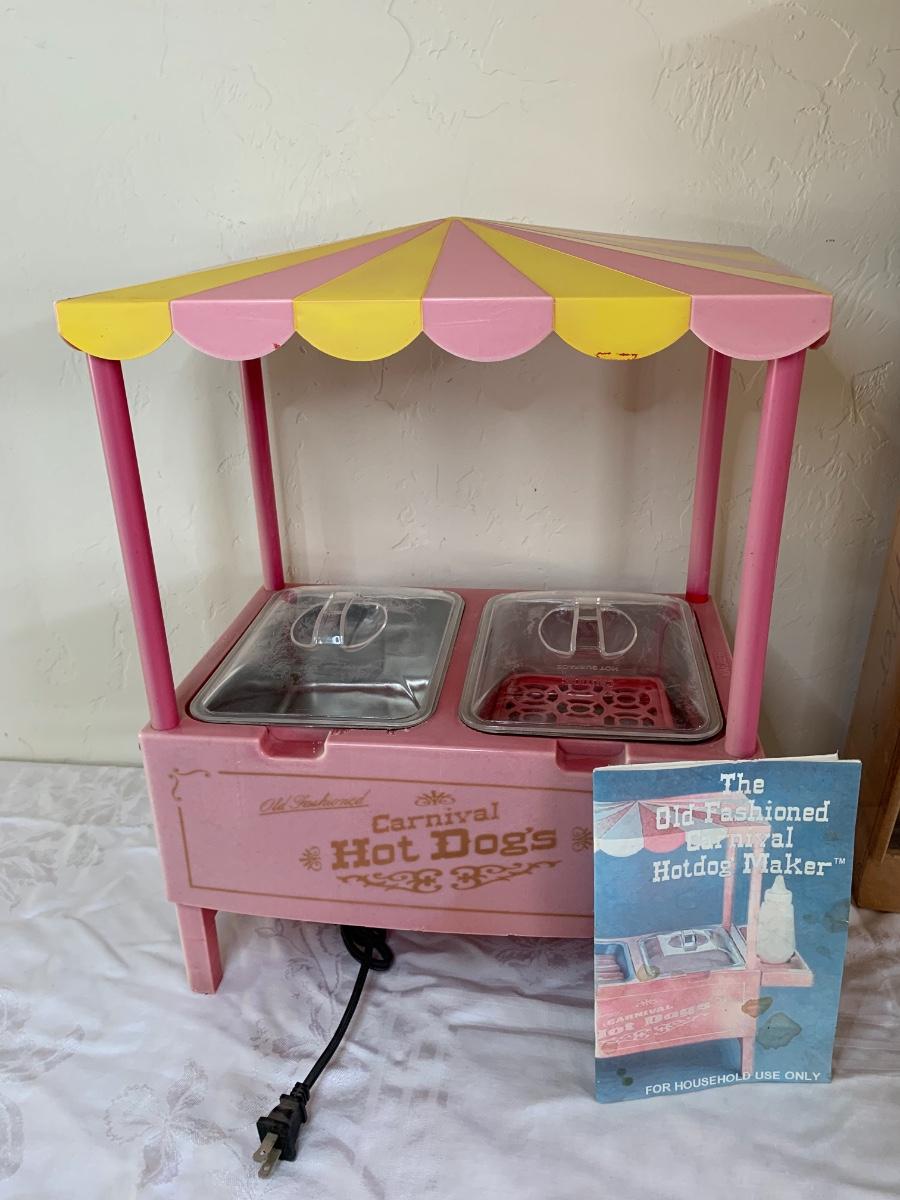 Old Fashioned hot dog maker cart (condiment tray missing) and old fashioned popcorn maker in brand new condition