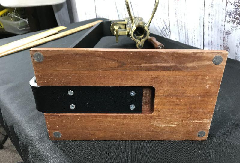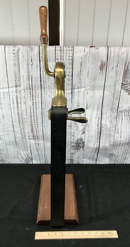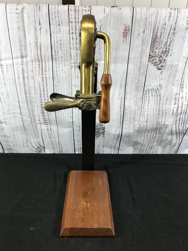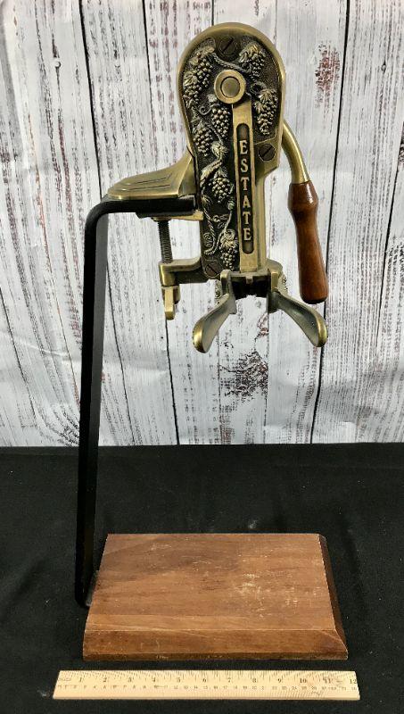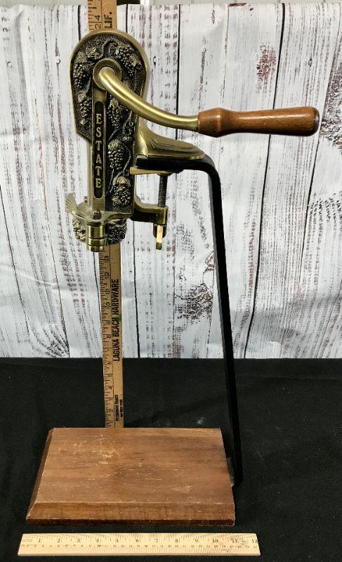 Wine cork puller, sits on table. Brass and wood. 24" High. #27-0033