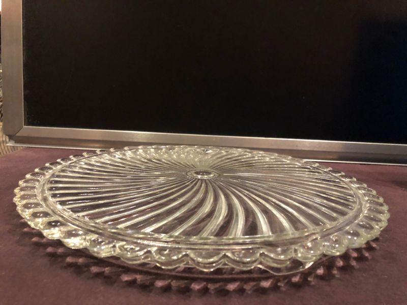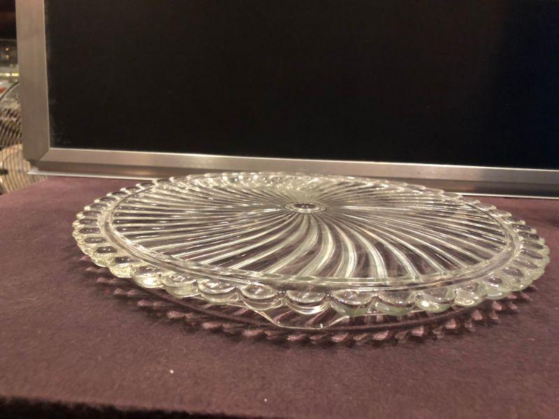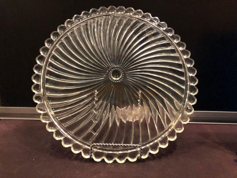 VINTAGE HEAVY GLASS FOOTED TRAY C1942, 12 3/4" X 12 3/4", EXCELLENT CONDITION!