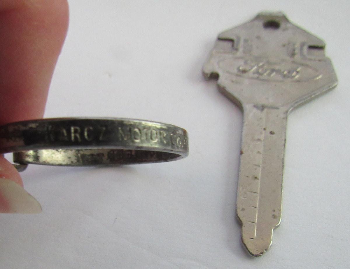 Old Ford Pinto Key Blank and Karcz Motor Co Pulasky Key Ring
