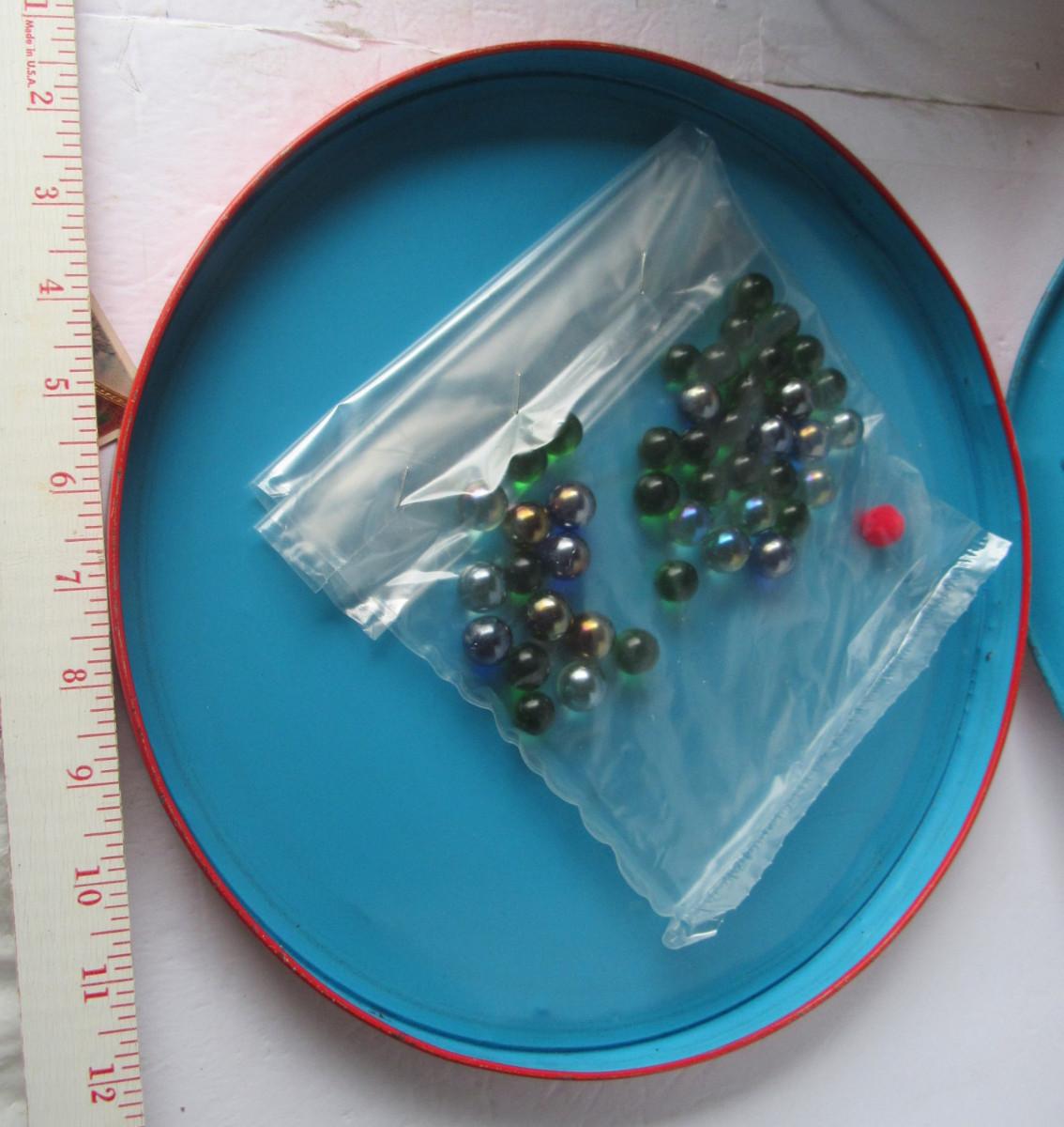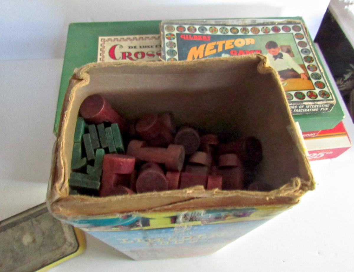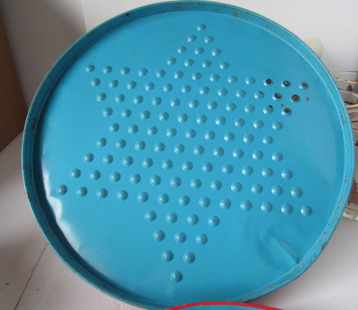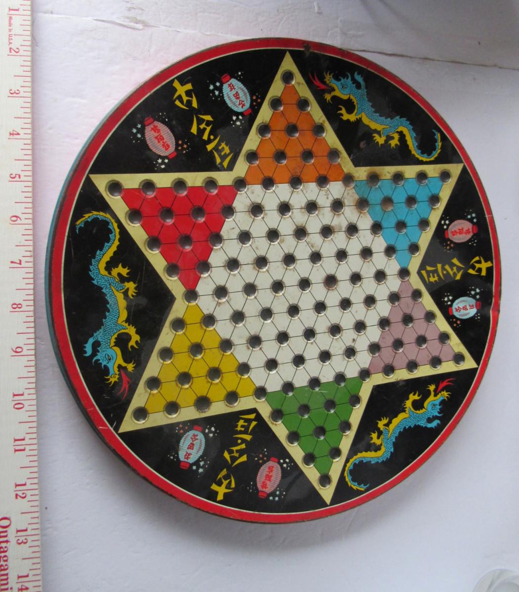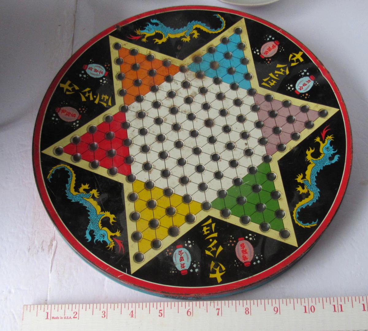 Well used, some have lots of wear, some good. Chinese checkers marbles are not original and not all there. It has dents and dings.