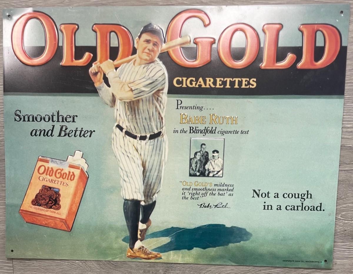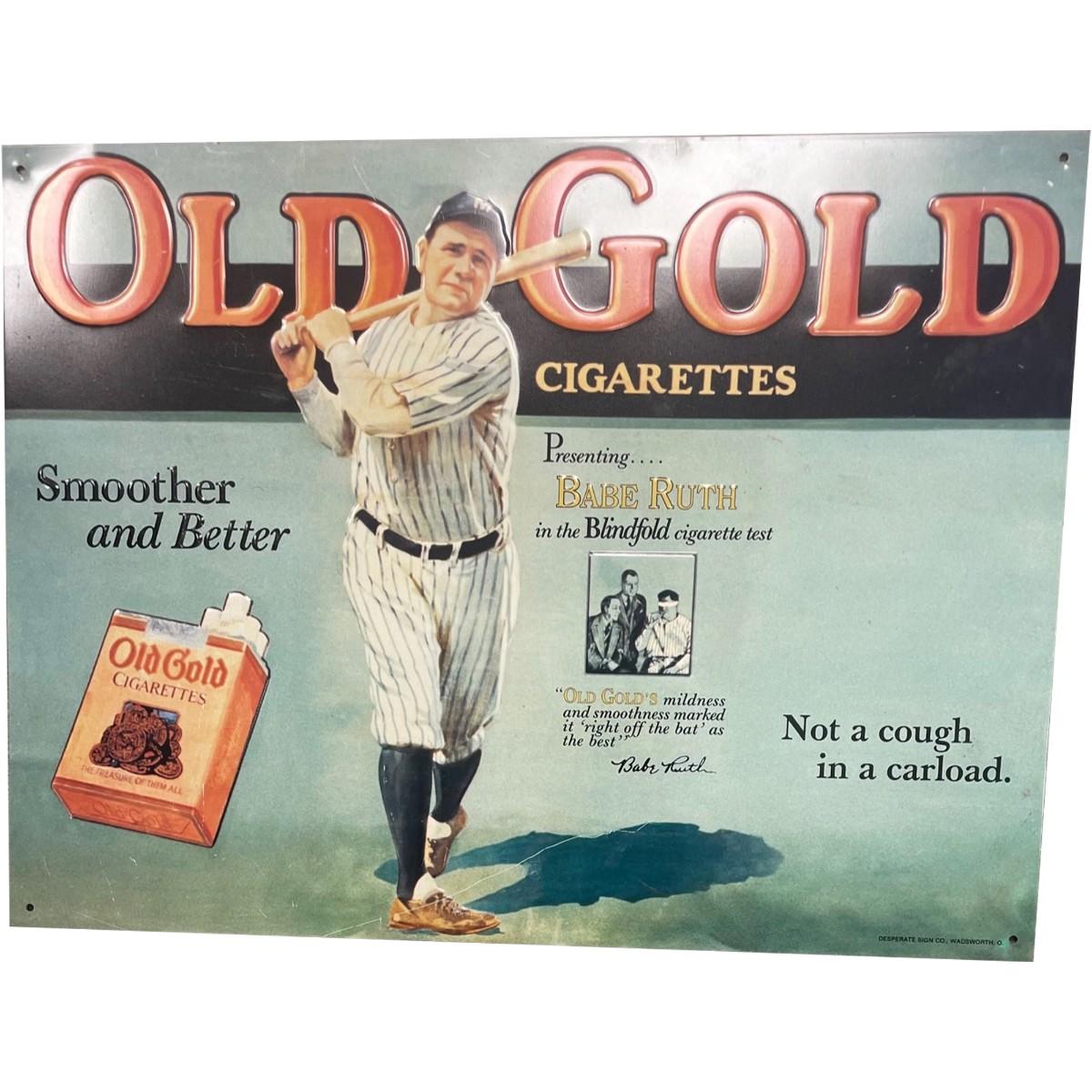 Description: Old Gold Cigarettes Advertising Sign. Measures approximately: 16 X 12 Inches. Material : Metal.