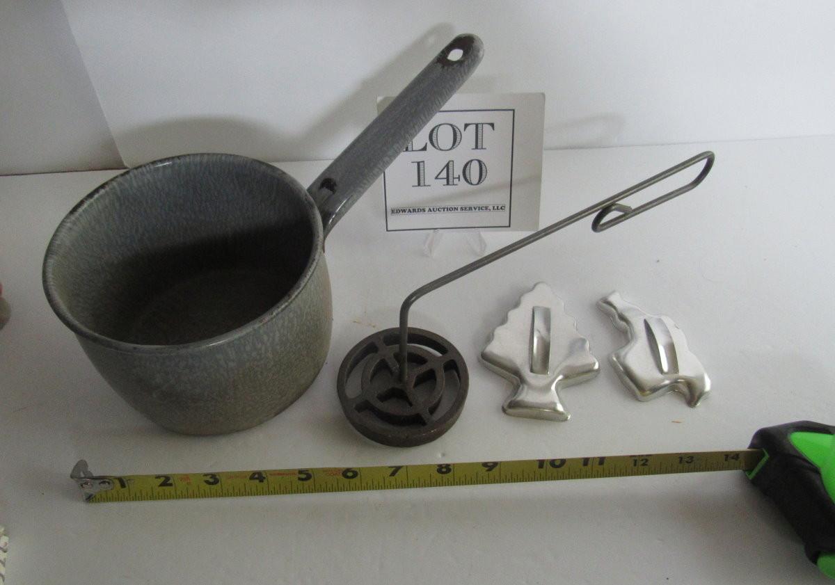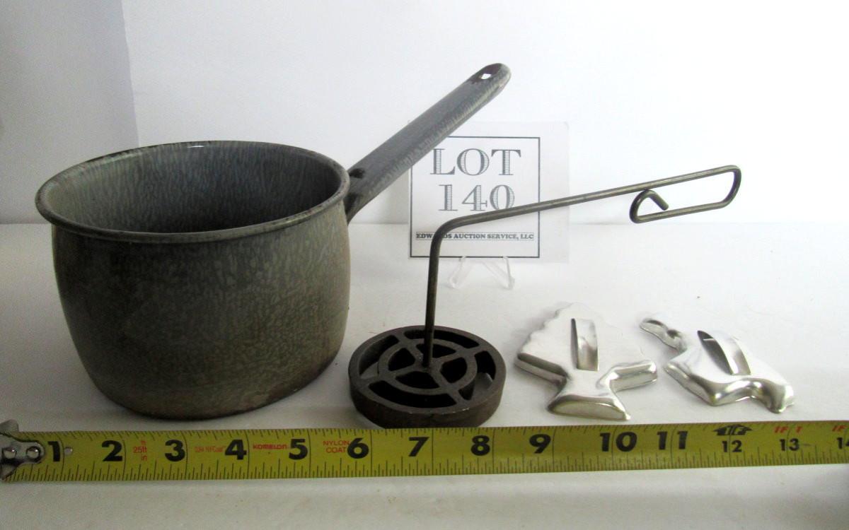 Old Graniteware Pot, Cutters and Iron Mold Press