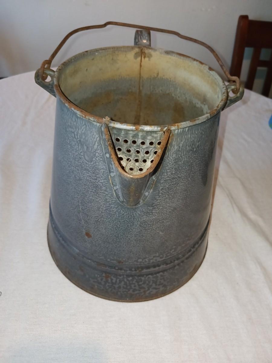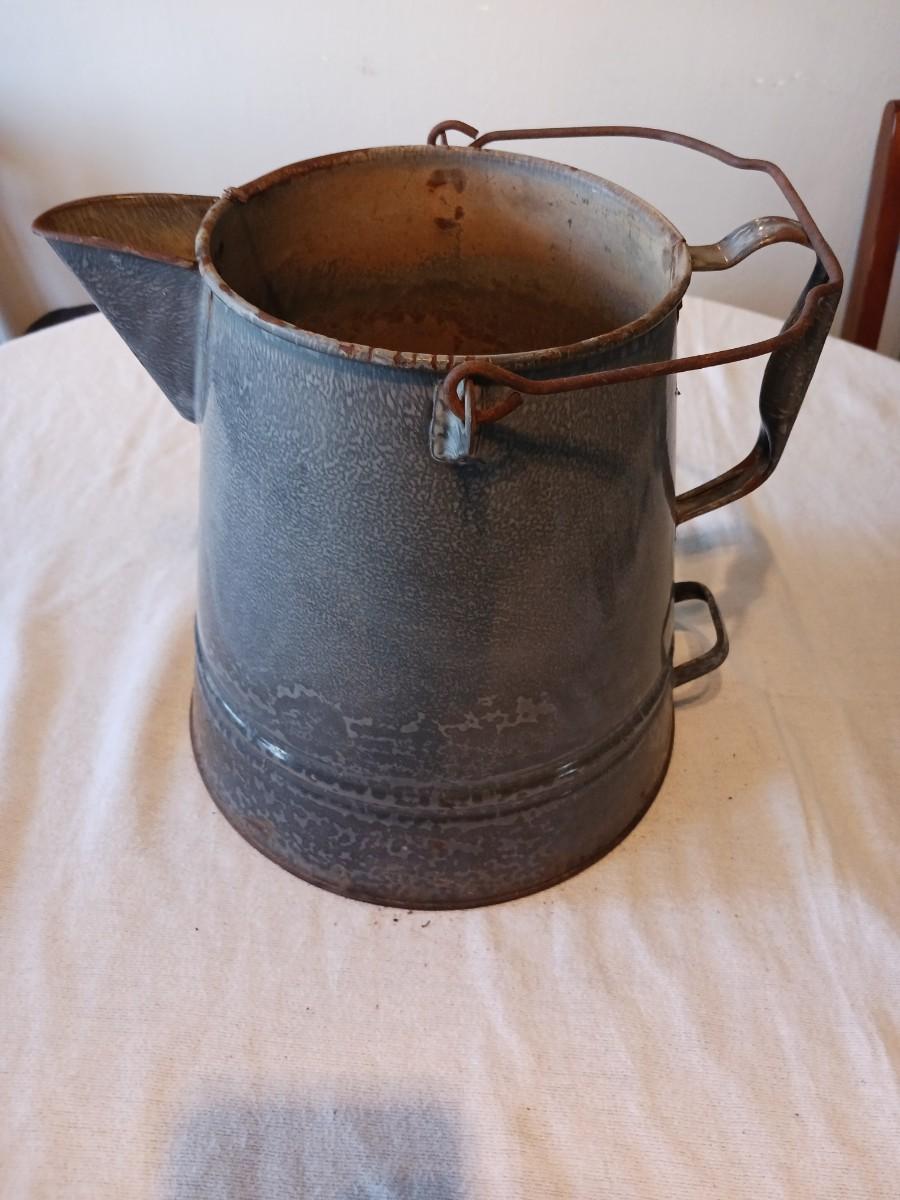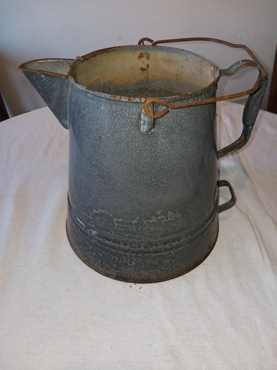 OLD GREY ENAMEL GRANITEWARE COFFEE POT