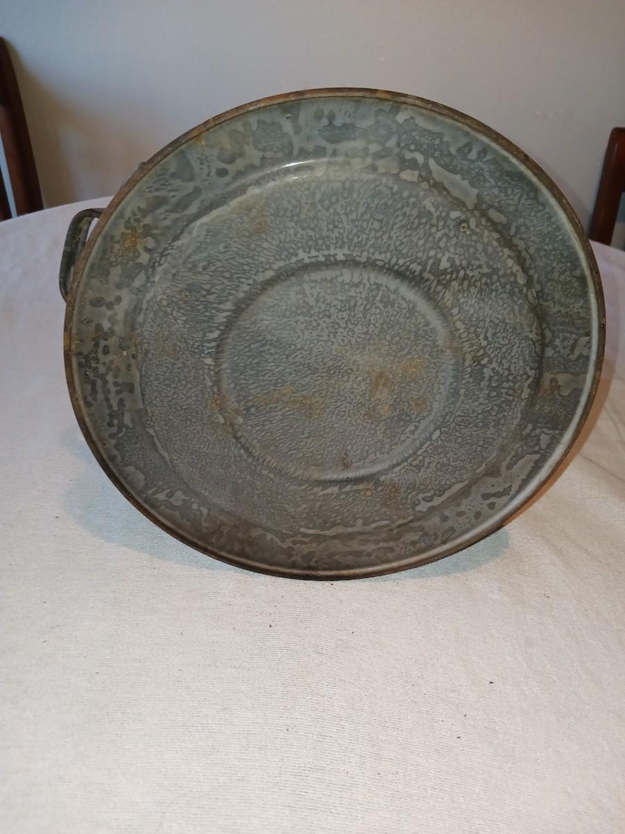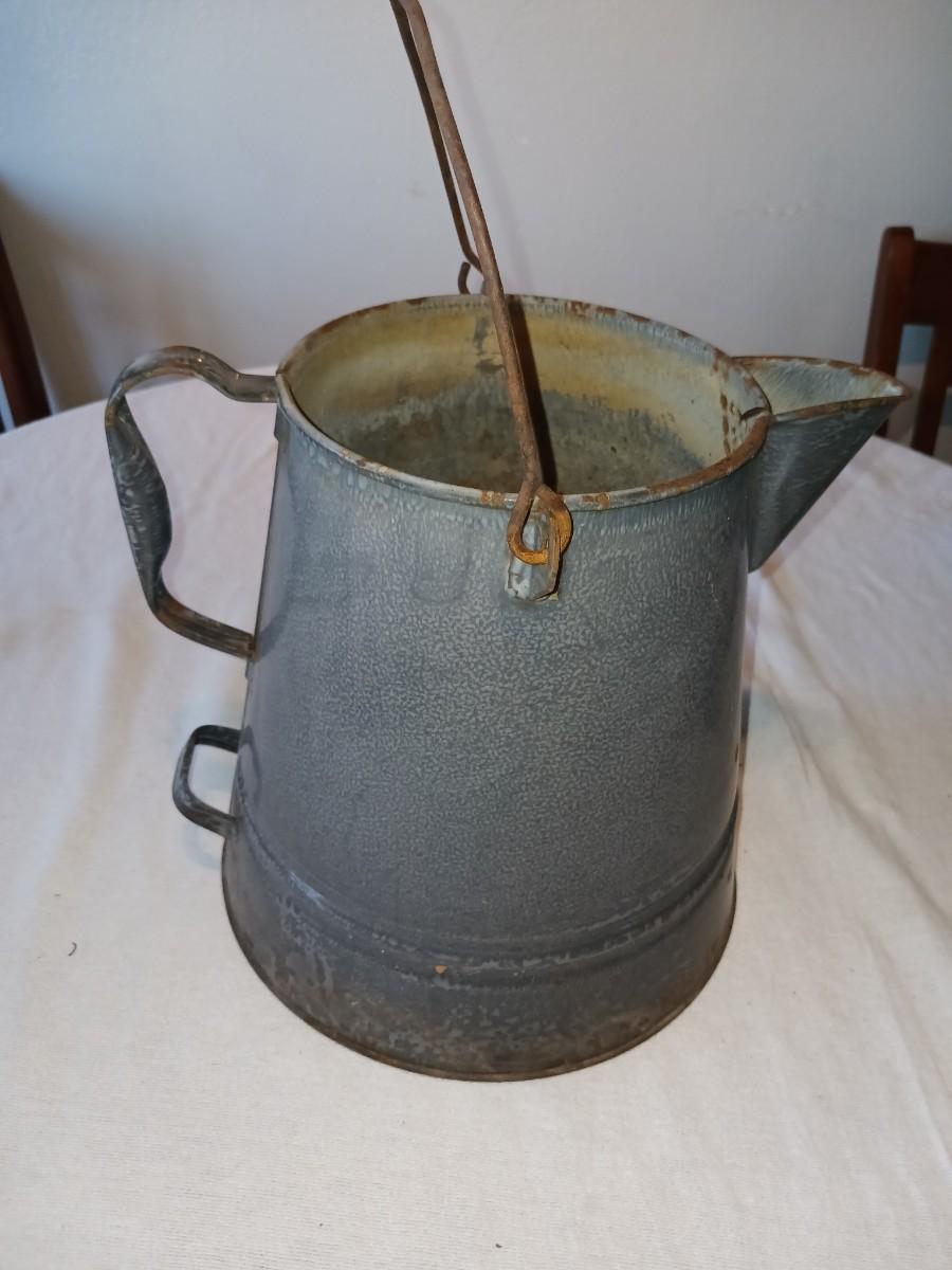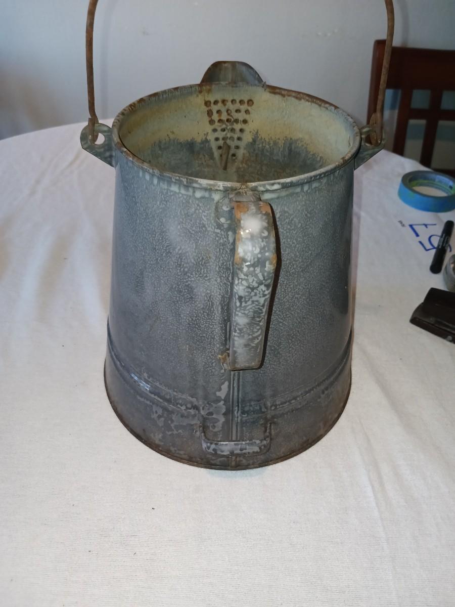 OLD GREY ENAMEL GRANITEWARE COFFEE POT