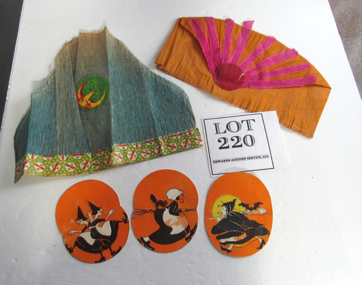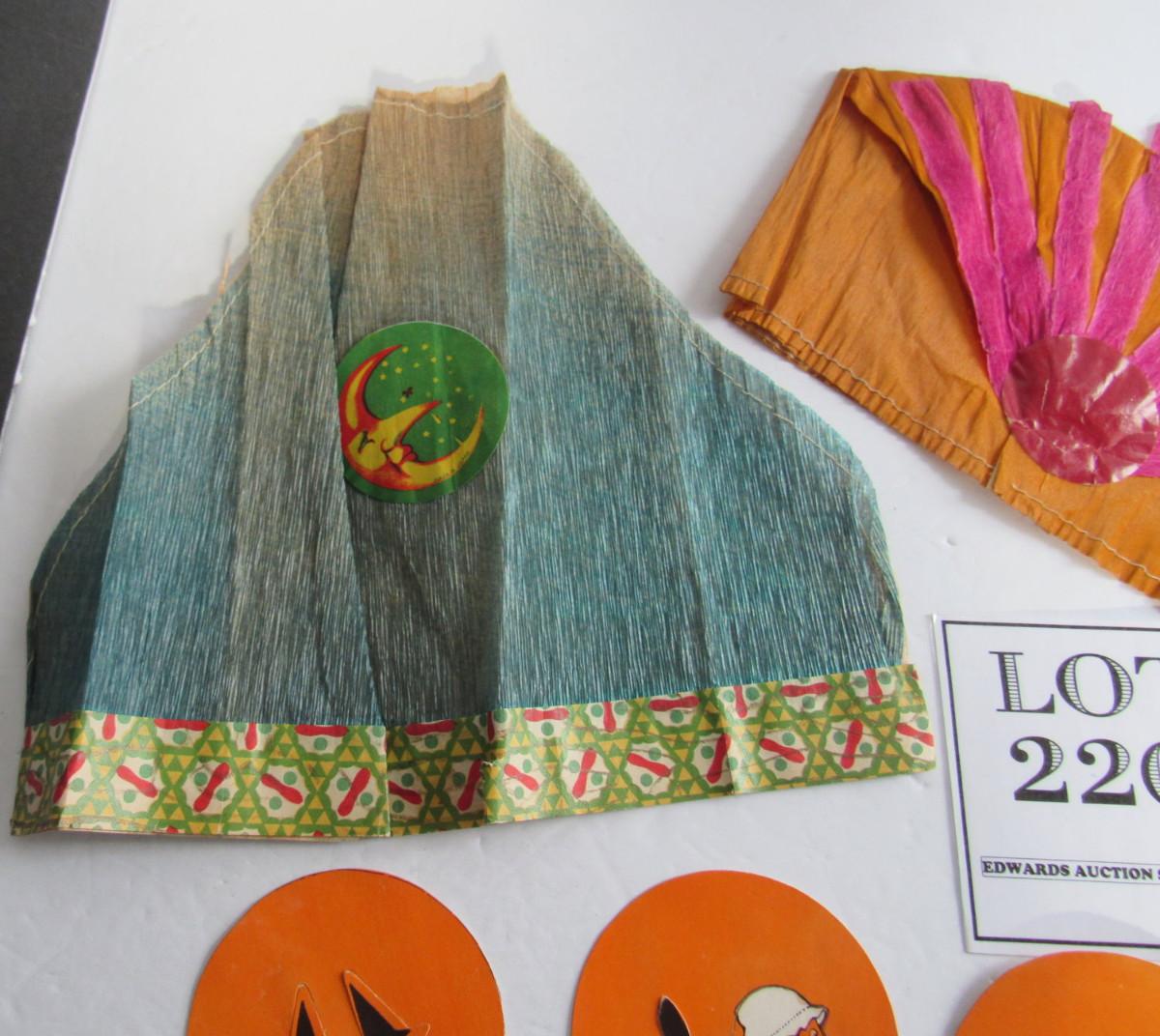 Hats are intact, some fading and wrinkles, but old. The die cut party favors are old but have lot of wear on the backs and some wear on fronts. Shipping is available at cost plus $5.00 per box handing and supply fee. See our terms for details. All sales final.