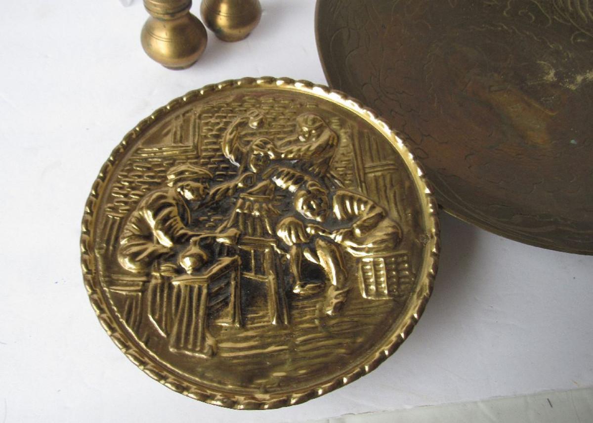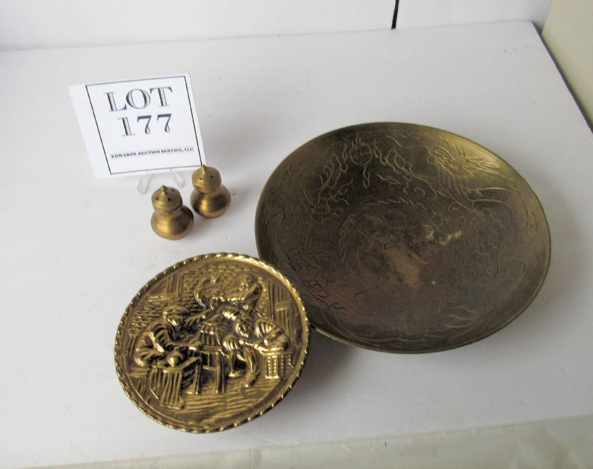 Old Heavy Brass Bowl, Brass Shakers and Brass Wall Pocket