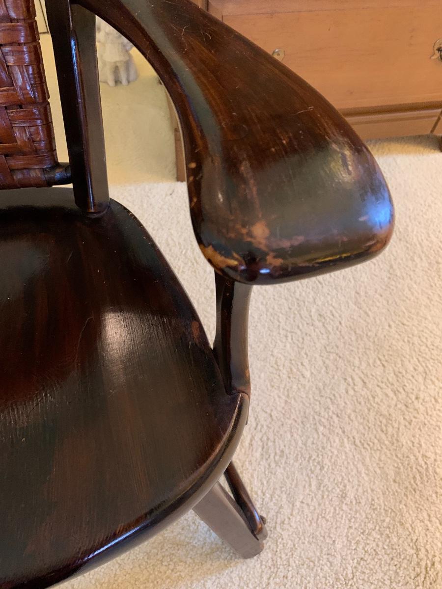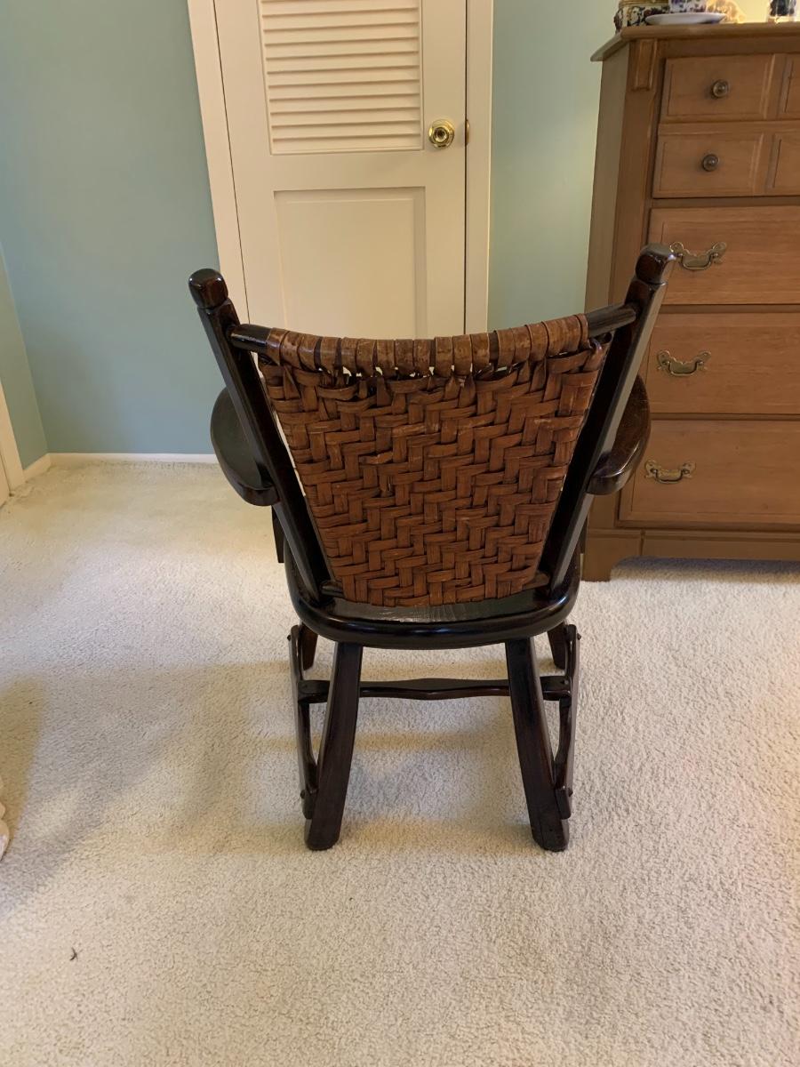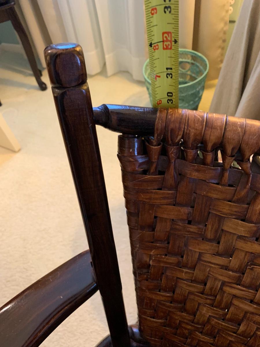 Classic American Rustic furniture - lounge, armchair, made by the Old Hickory Furniture Company circa 1940's. The chair features a solid oak frame with a woven wicker backrest, it is in very good, original, clean and ready to use condition, showing only light cosmetic wear, normal and consistent with age.