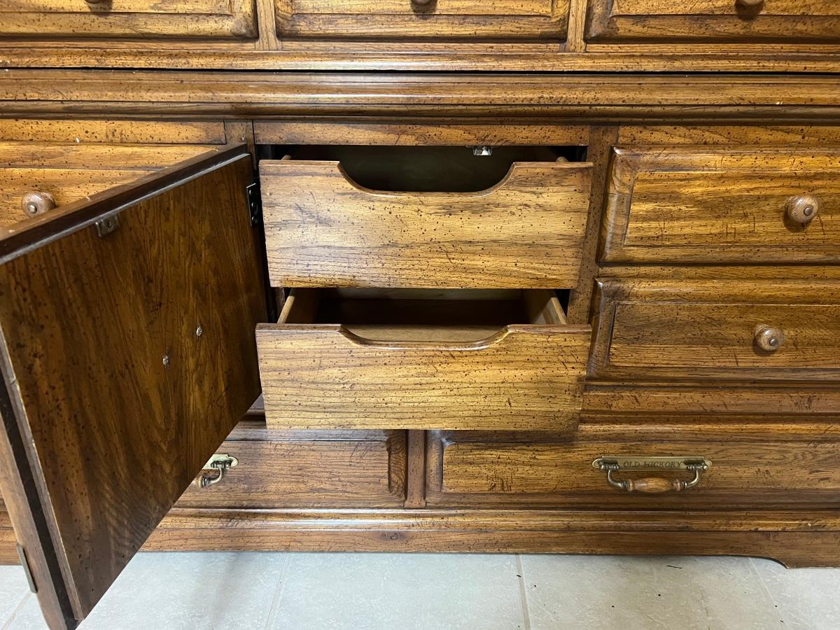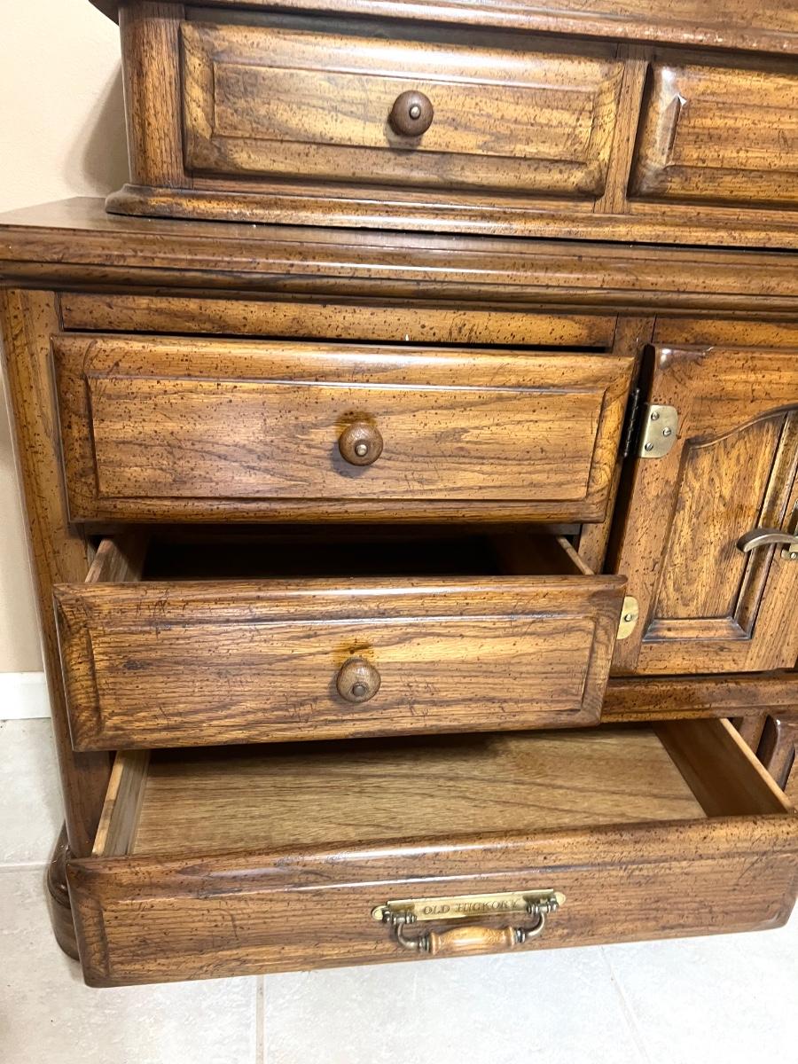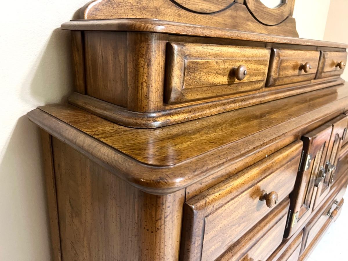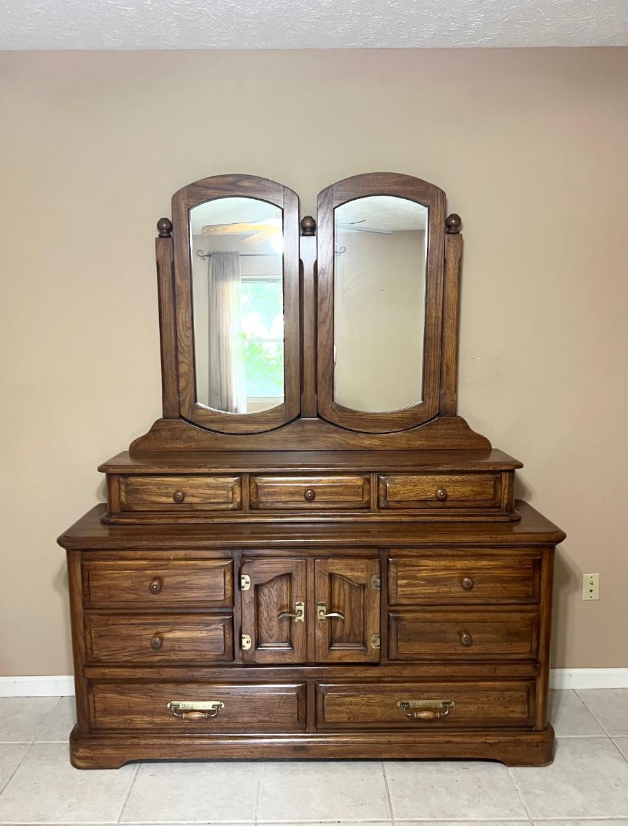 When we say solid, I mean SOLID!! It is heavy! This dresser has 11 drawers total! This is two pieces, so moving it will be easier. Measure 78 inches tall, 66 inches wide and 18 inches deep.