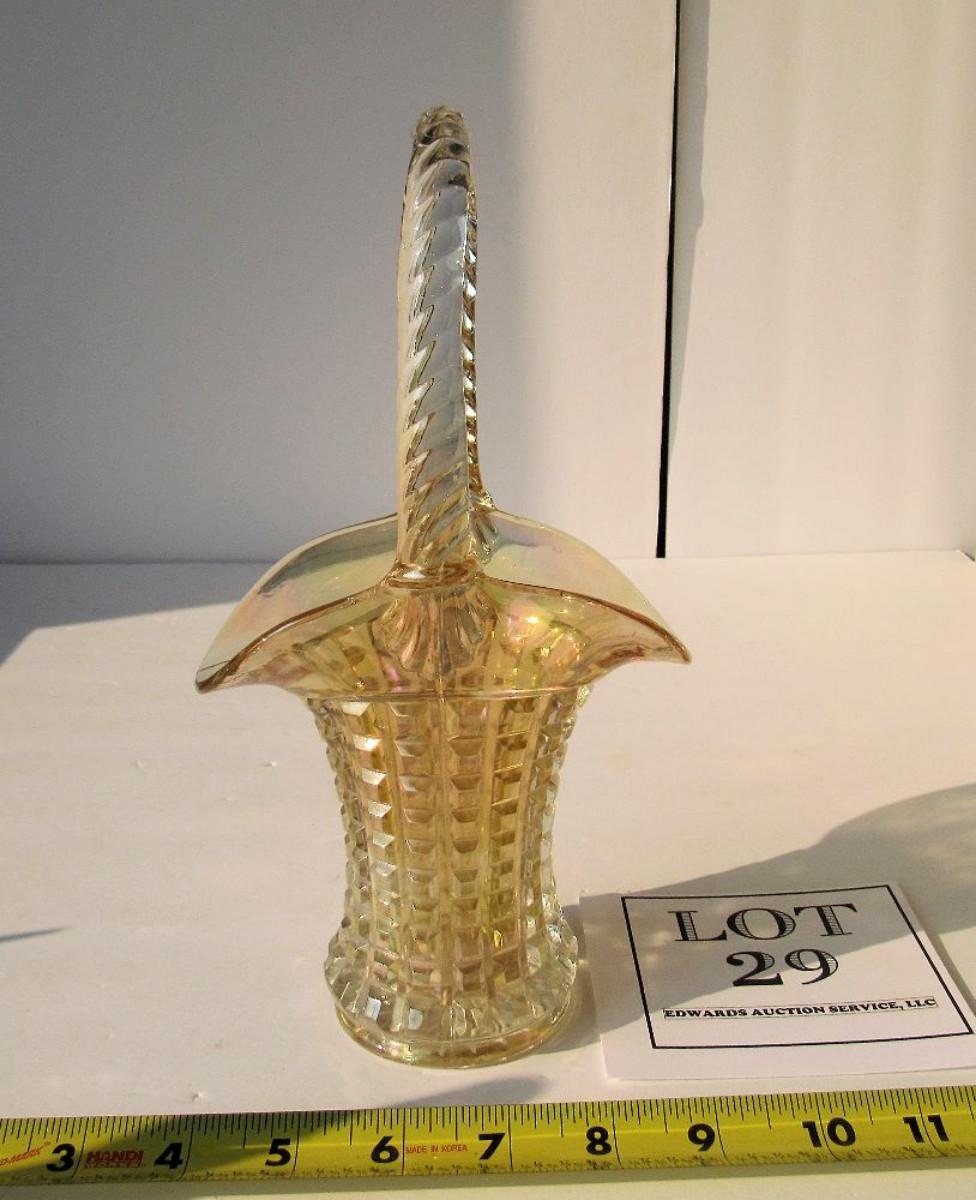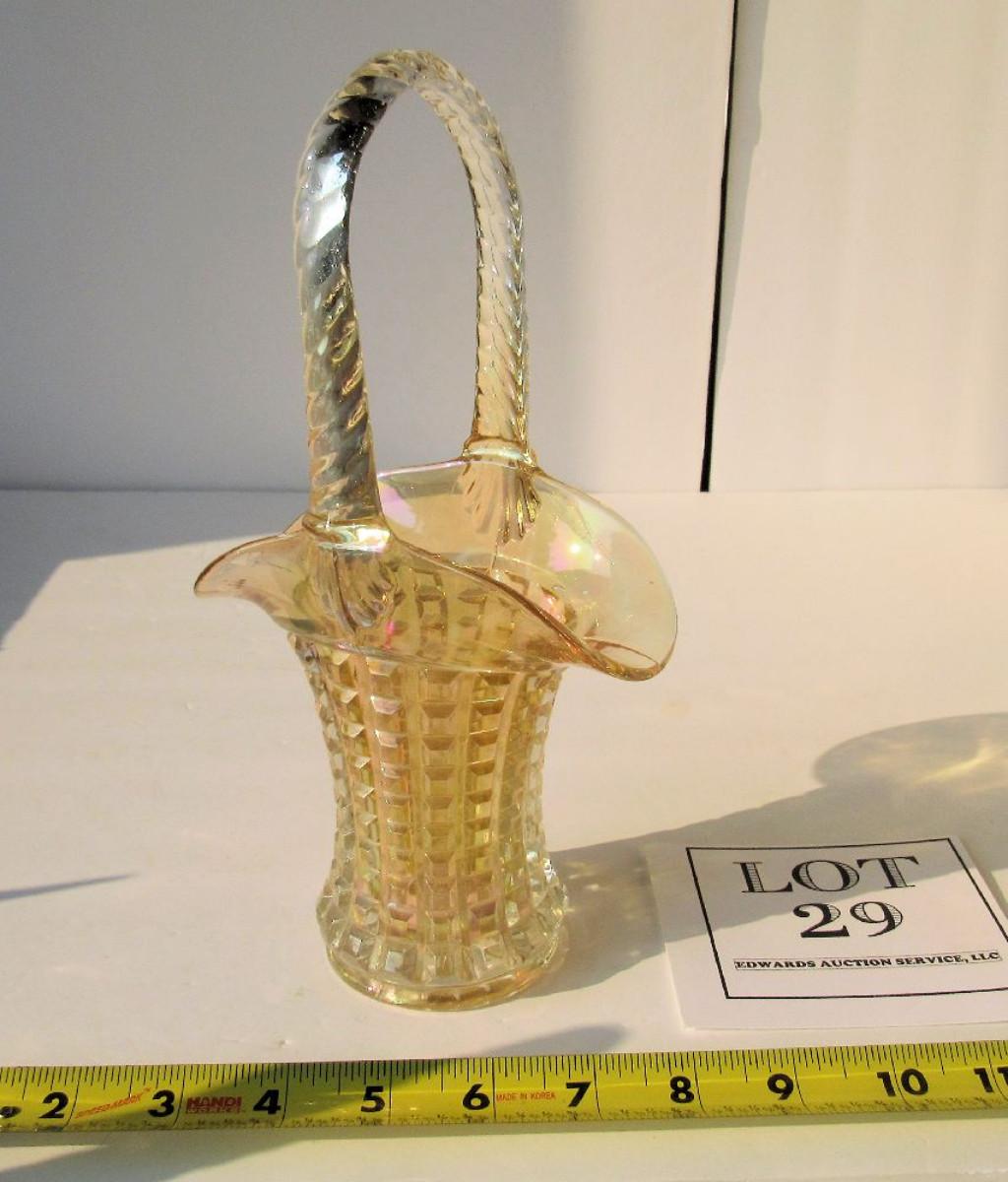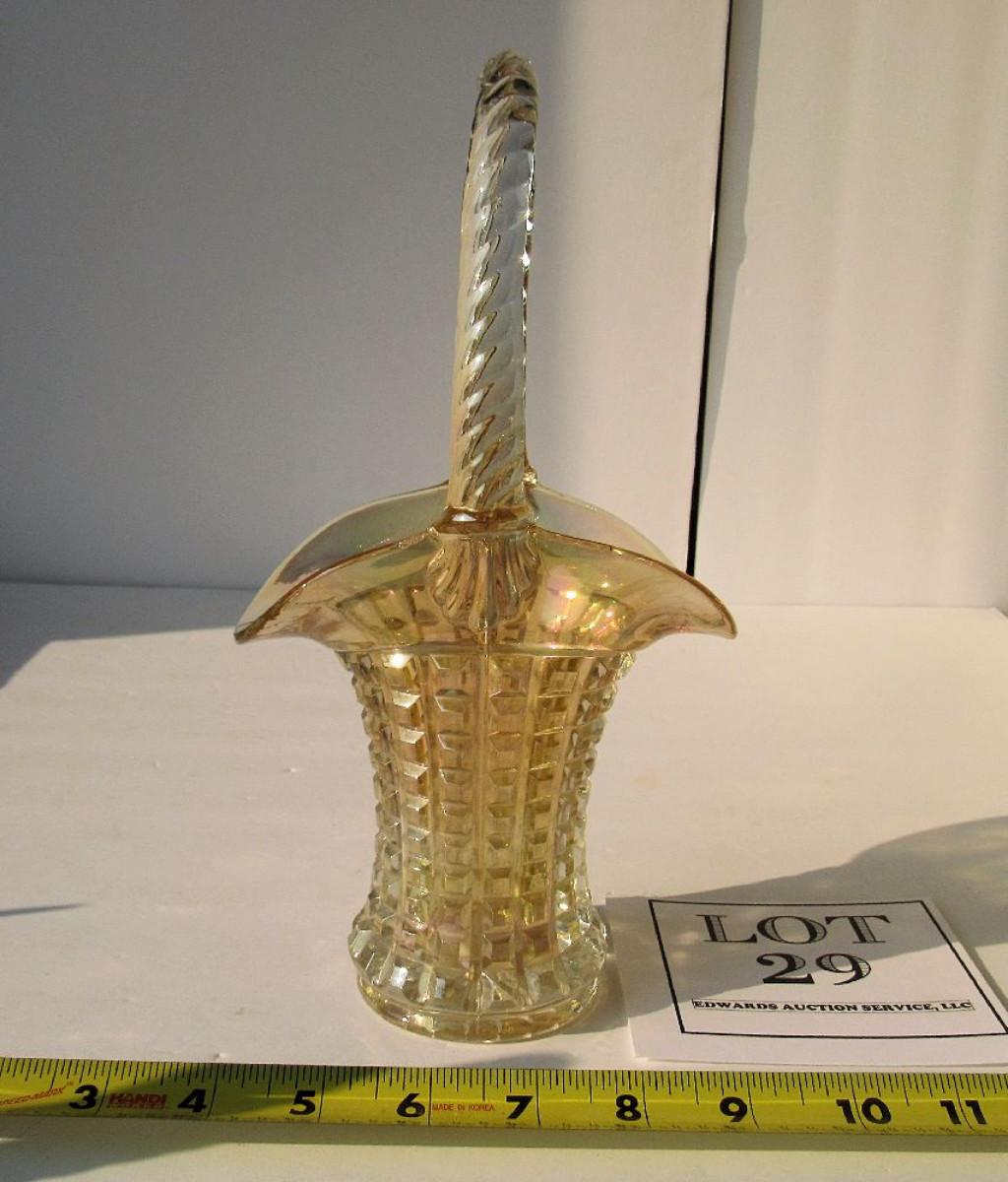 Old Imperial Glass Waffle Block Pattern Carnival Glass Basket