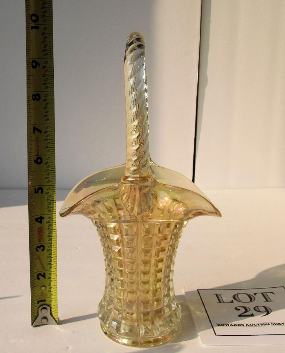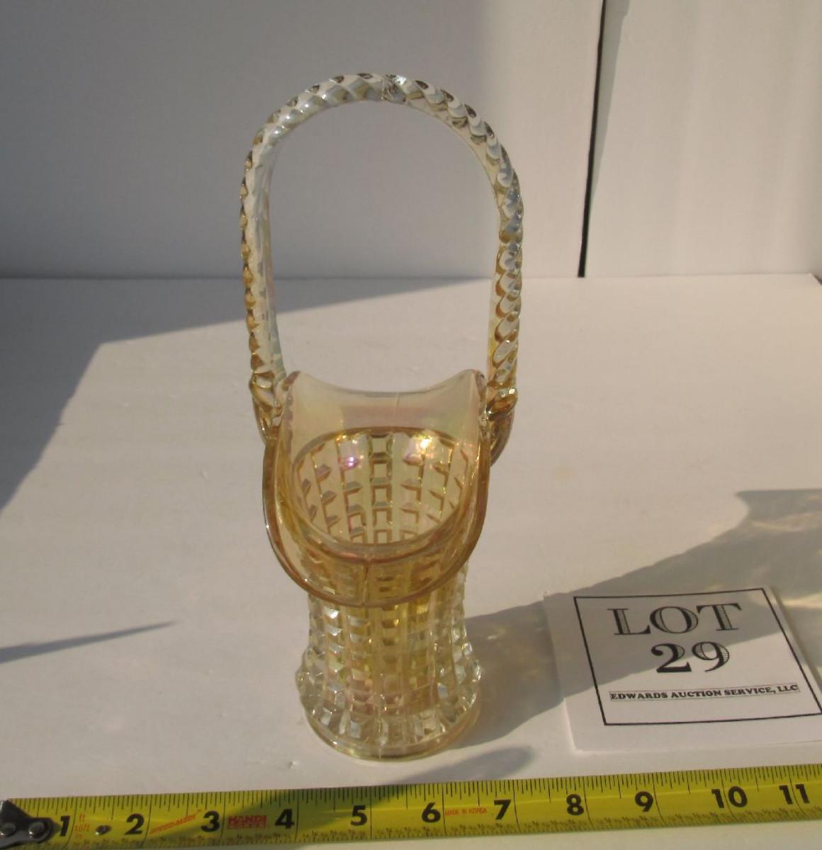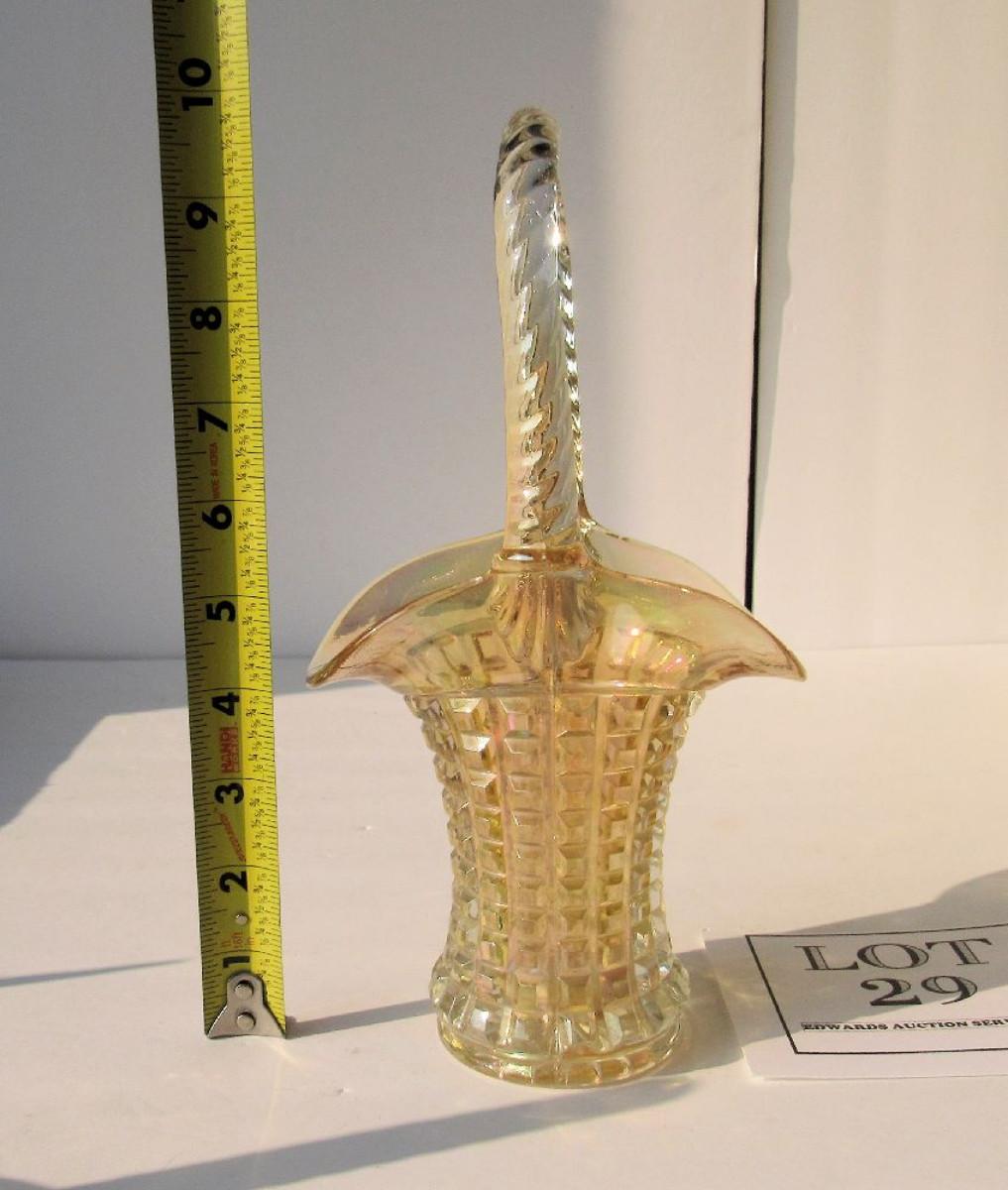Old Imperial Glass Waffle Block Pattern Carnival Glass Basket