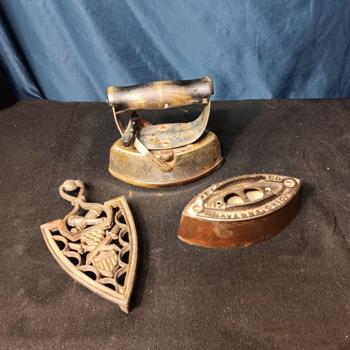 OLD IRONS AND CAST IRON TRIVET
