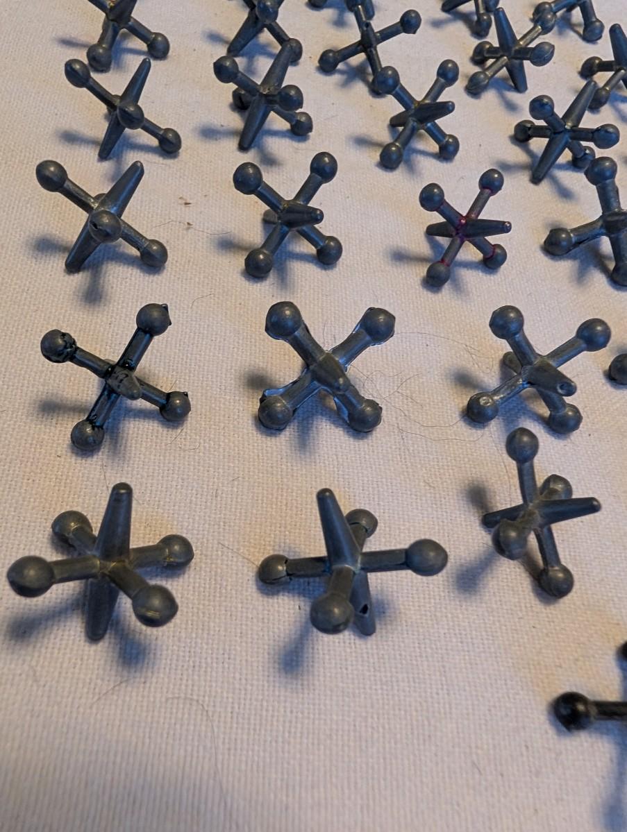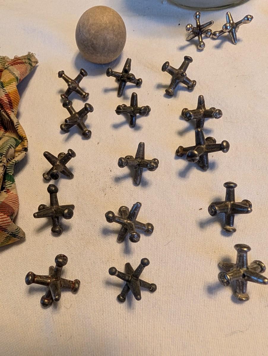 Vintage metal jacks and rubber ball. I'm sure these were played with a lot.