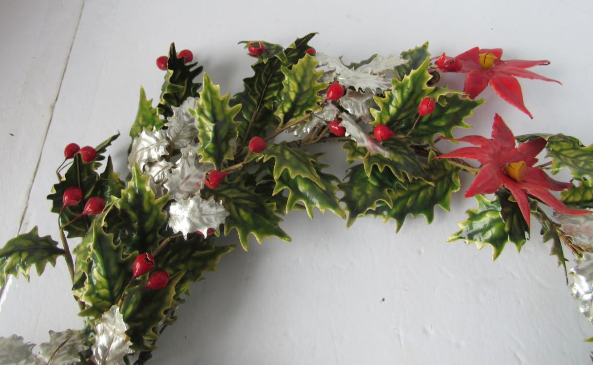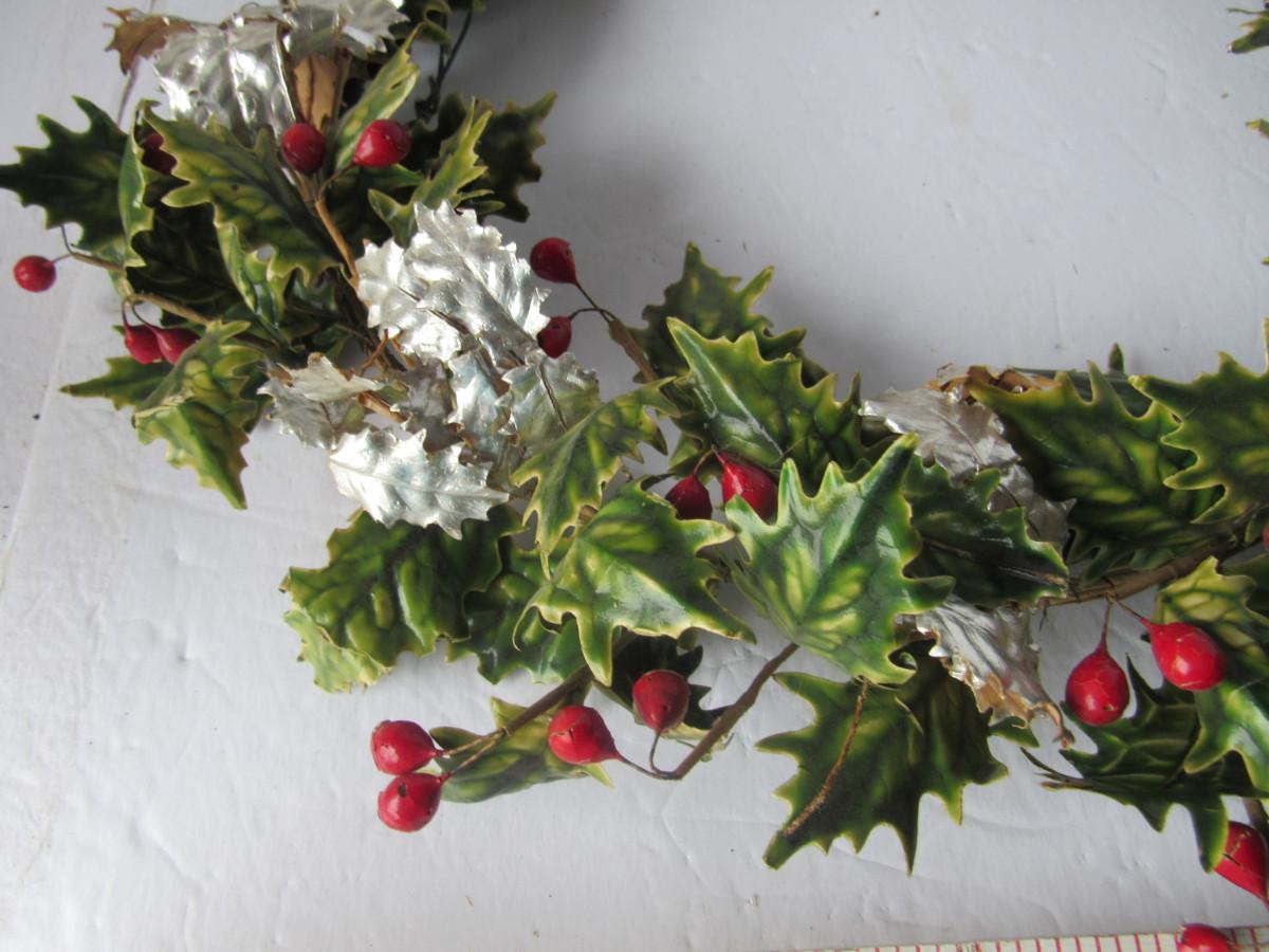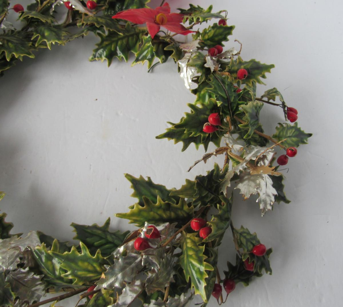 Old Lacquered Leaf Holly and Berry Christmas Wreath