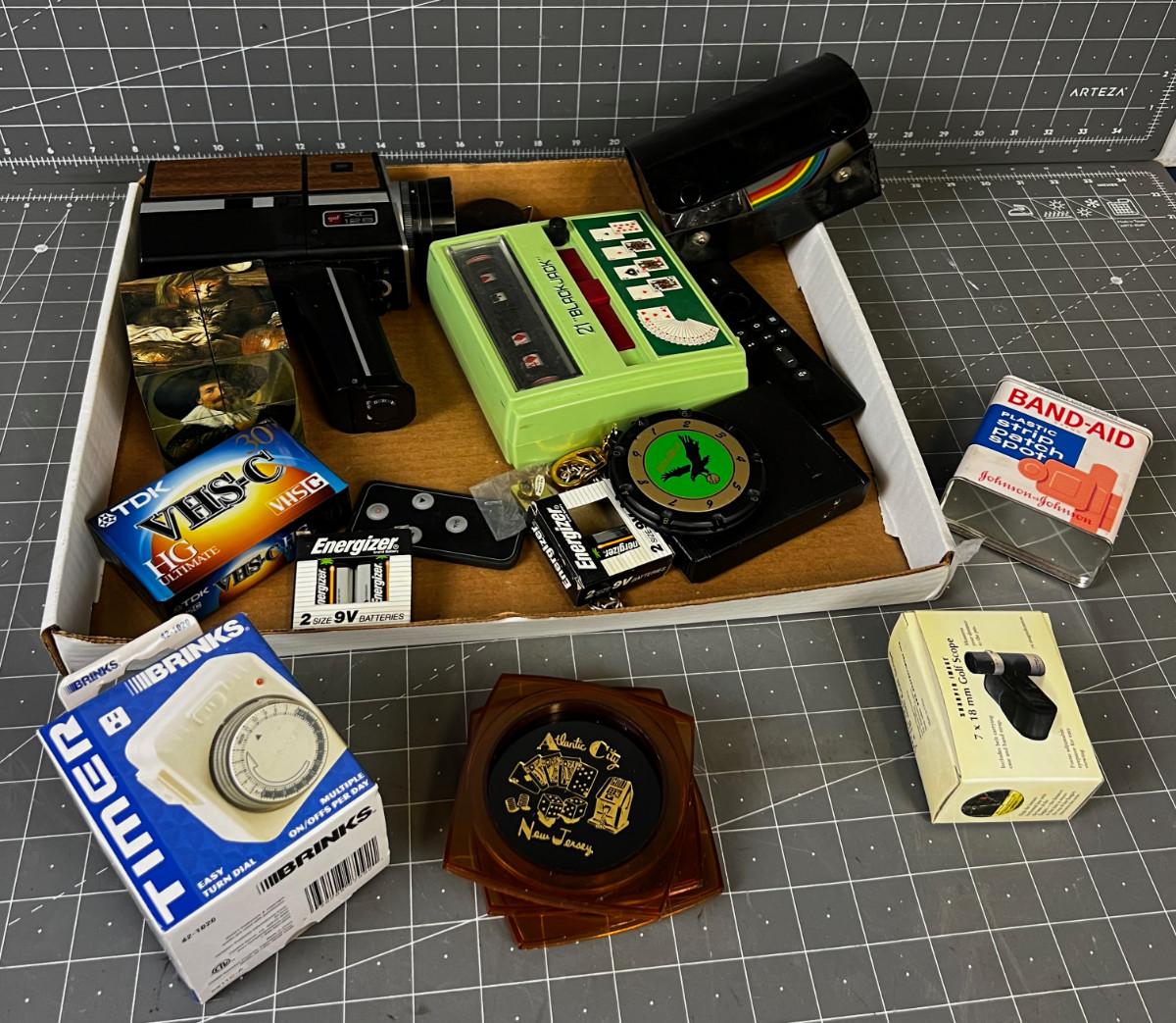 Old Lot of Junk Shelf Clean out: Remote, Video Record, New Jersey Coasters