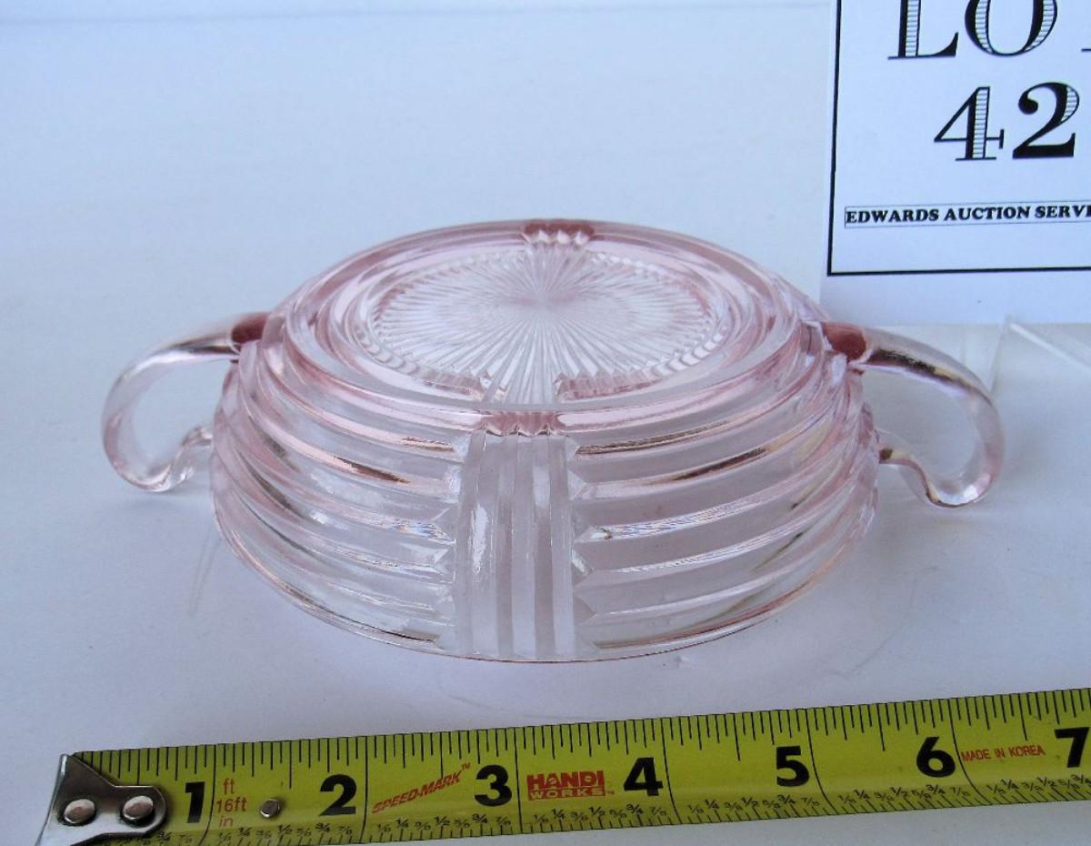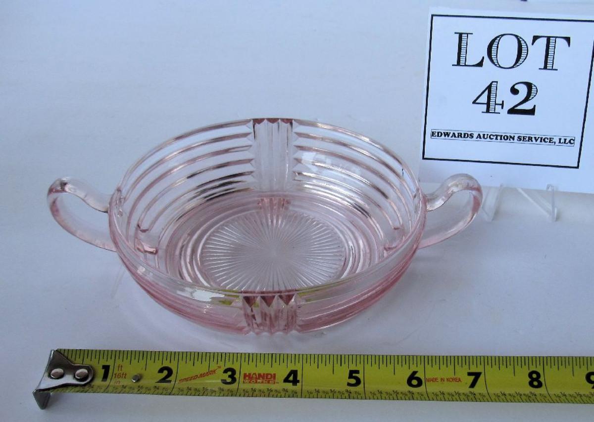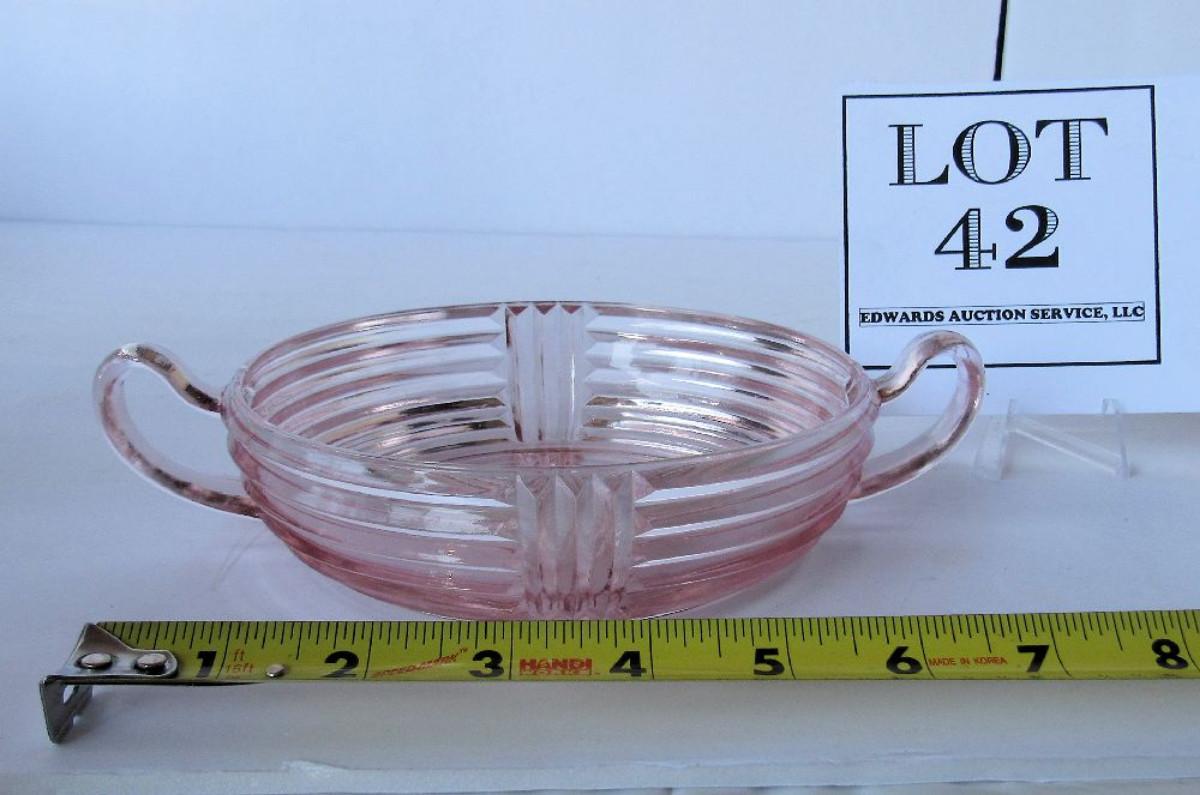 Pink Depression Glass Handled Candy Dish