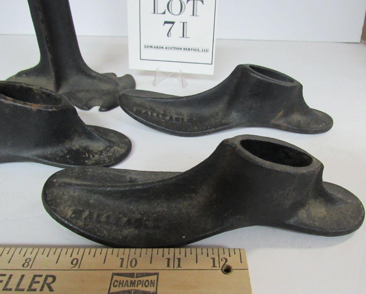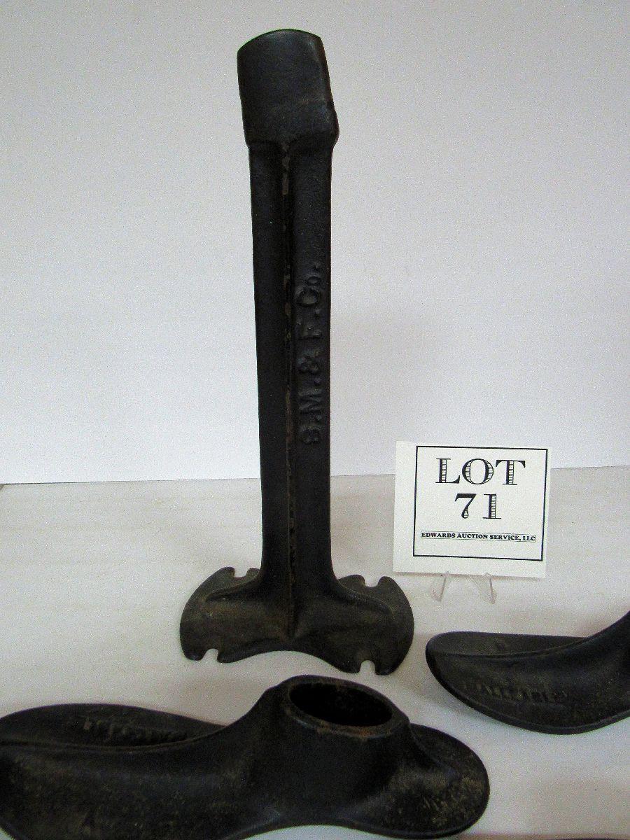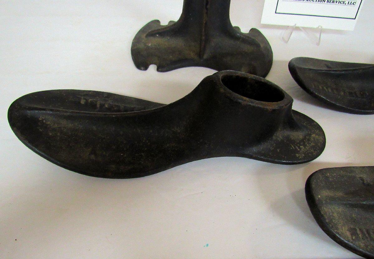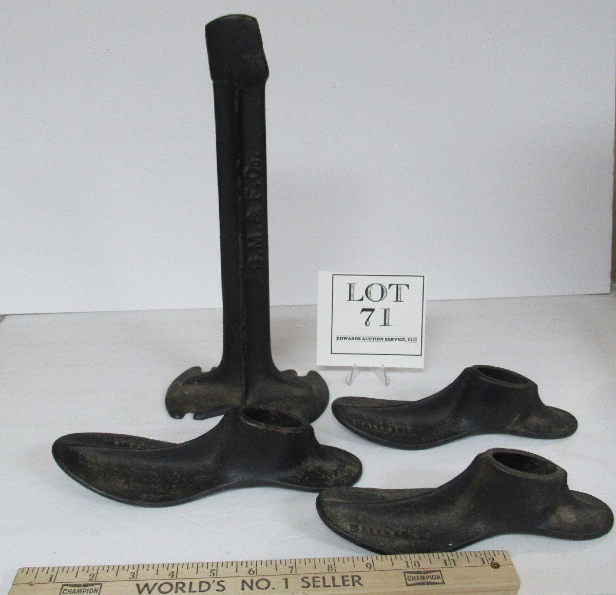 Old Malleable Shoe Last Stand and 3 Shoe Anvils, Different Sizes