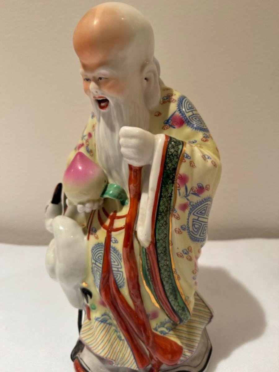 Vintage Chinese Glazed porcelain Shou Lao Sculpture - God of Longevity
