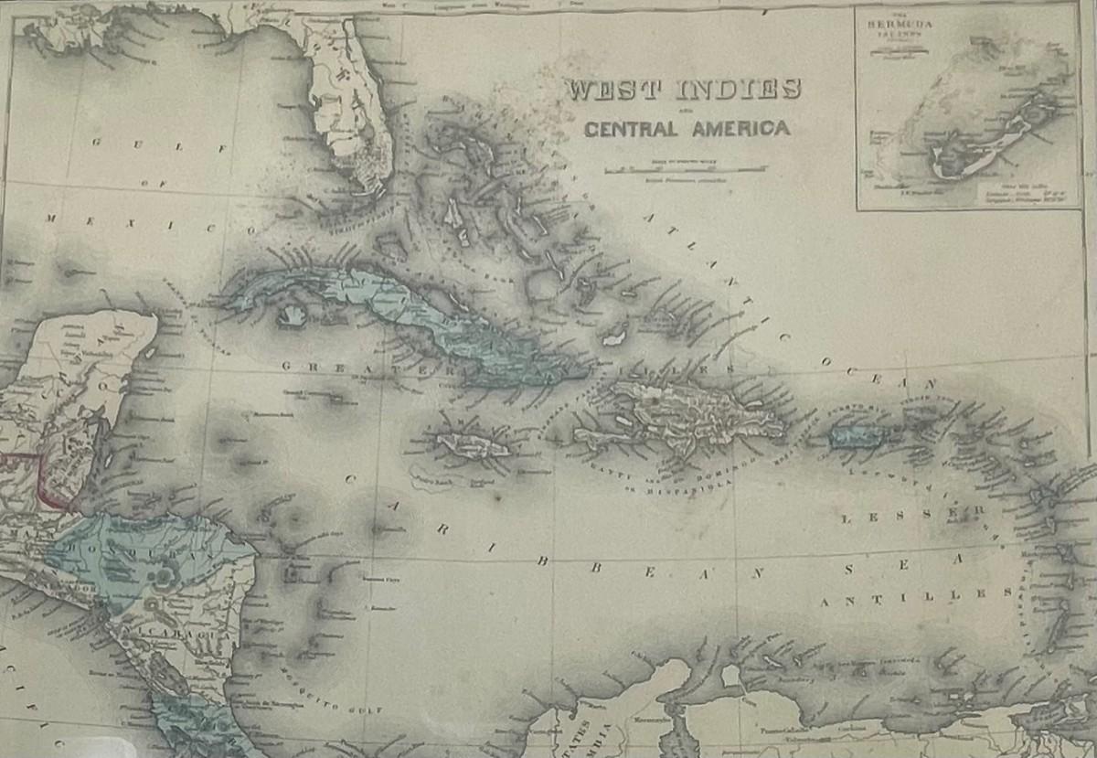Description: OLD MAP of the West Indies/ Carta Esperica/ UNA PARTE DE LAS ISLAS ANTILAS LAS DE PUERTO RICO SANTO DOMINGO JAMAYCA Y CUBA/ 1804. Material: Paper; Measurements: 25x36 in. (framed), 24x35 in. (canvas)