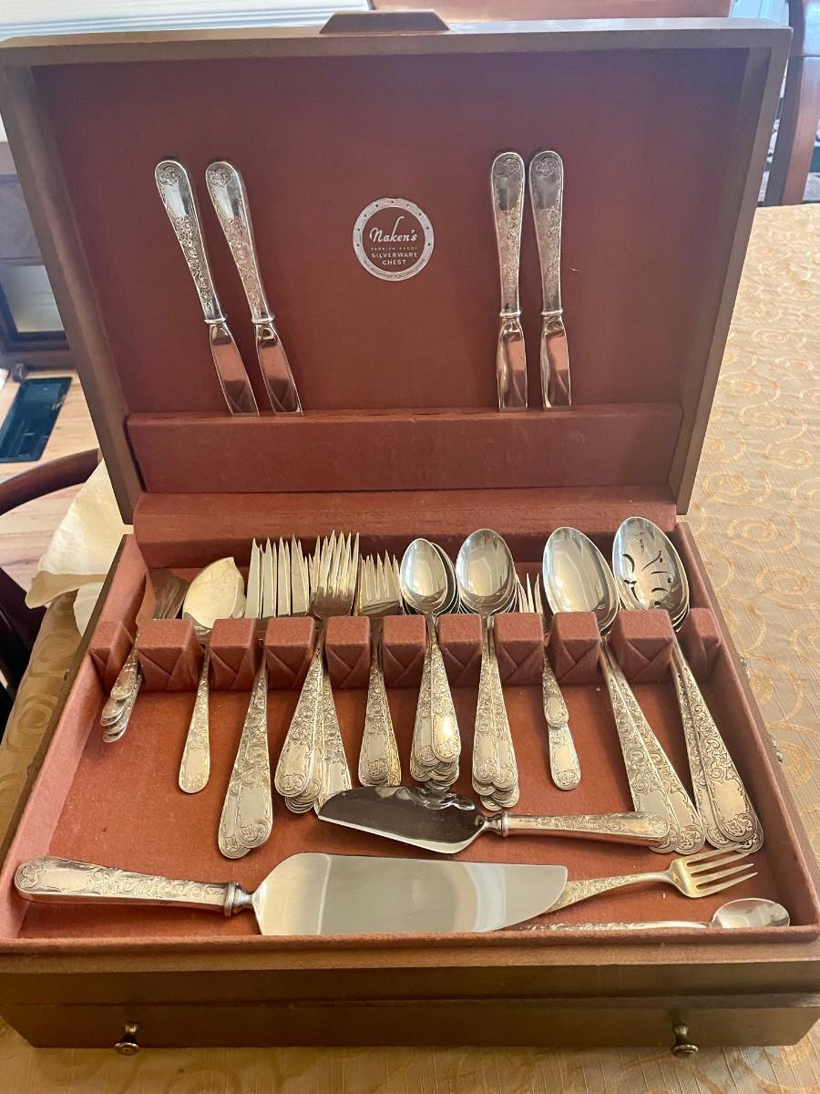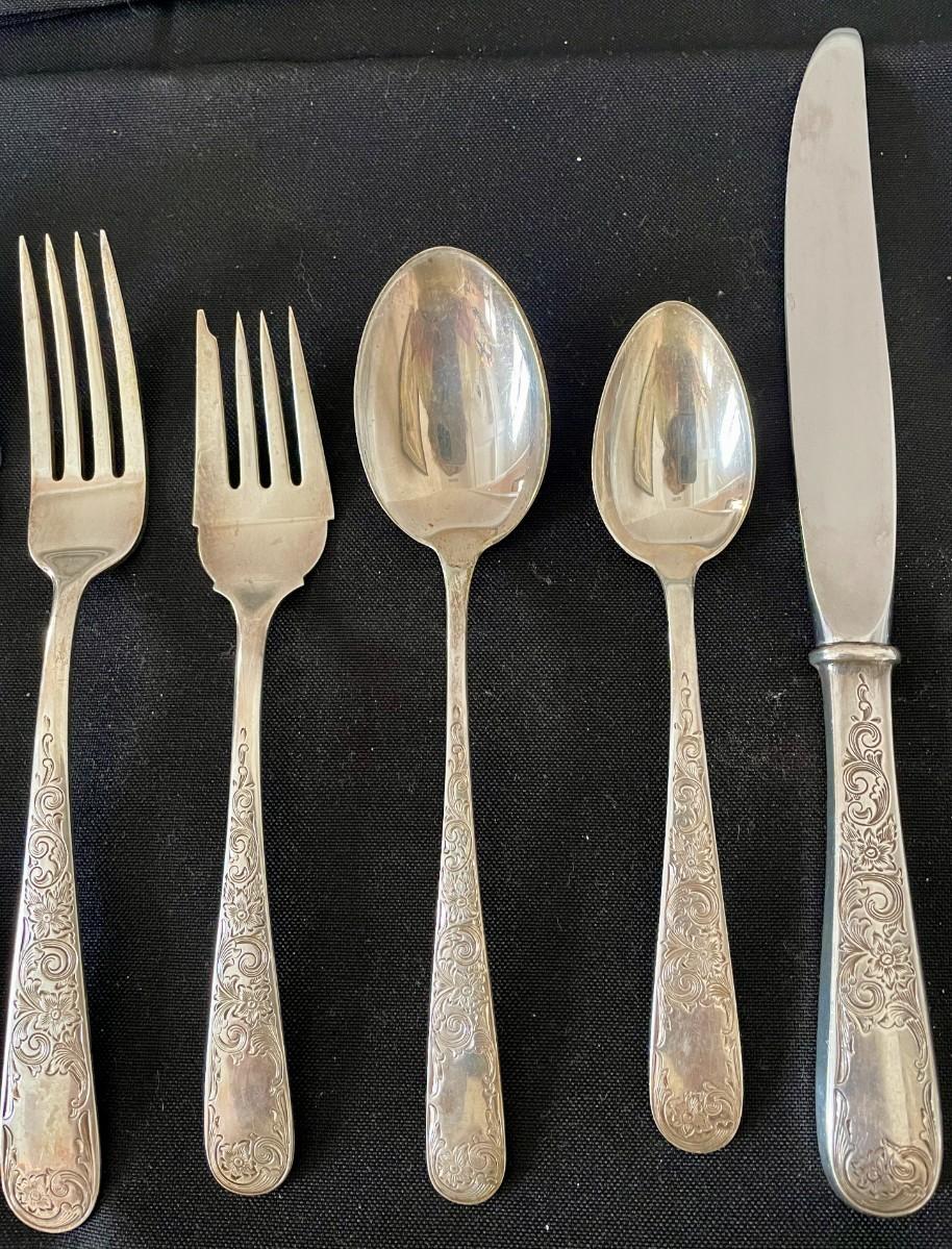 Vintage flatware with Sterling silver handles. Four full place settings, 51 total pieces as follows:
