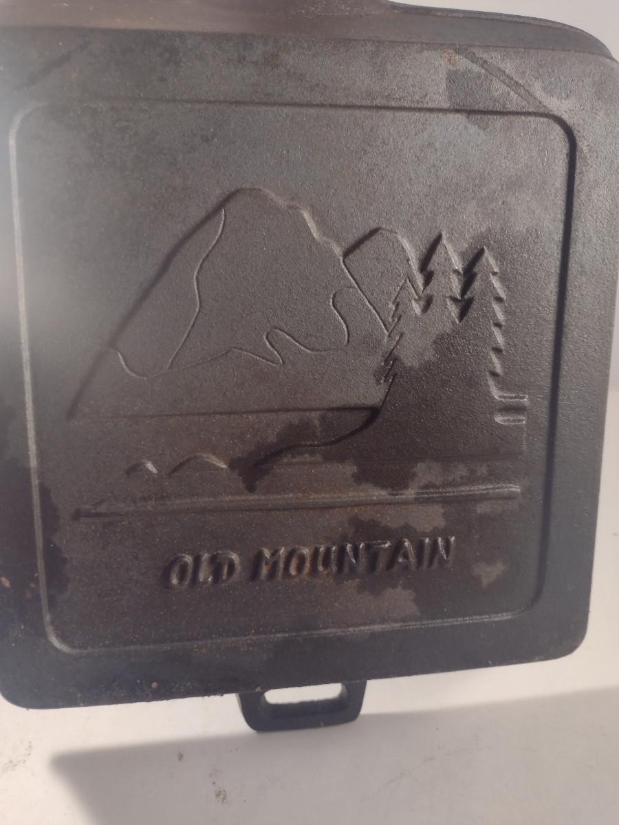 Old Mountain Cast Iron Square Grill Pan. Approx 10" in diameter.