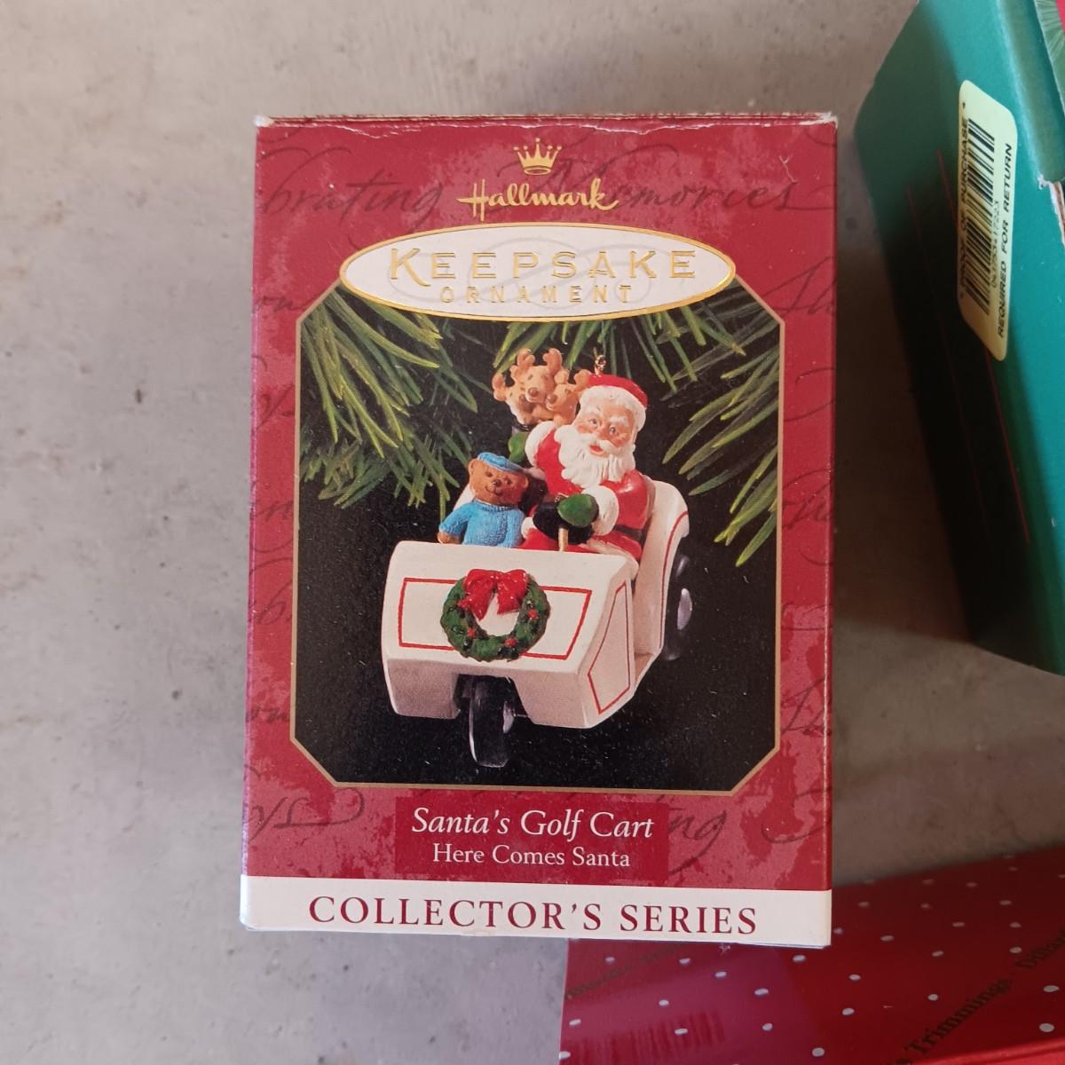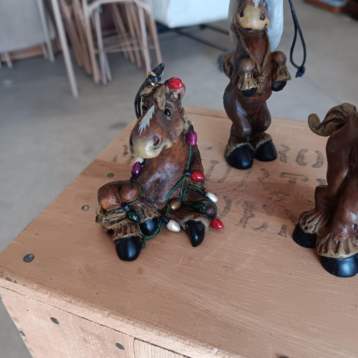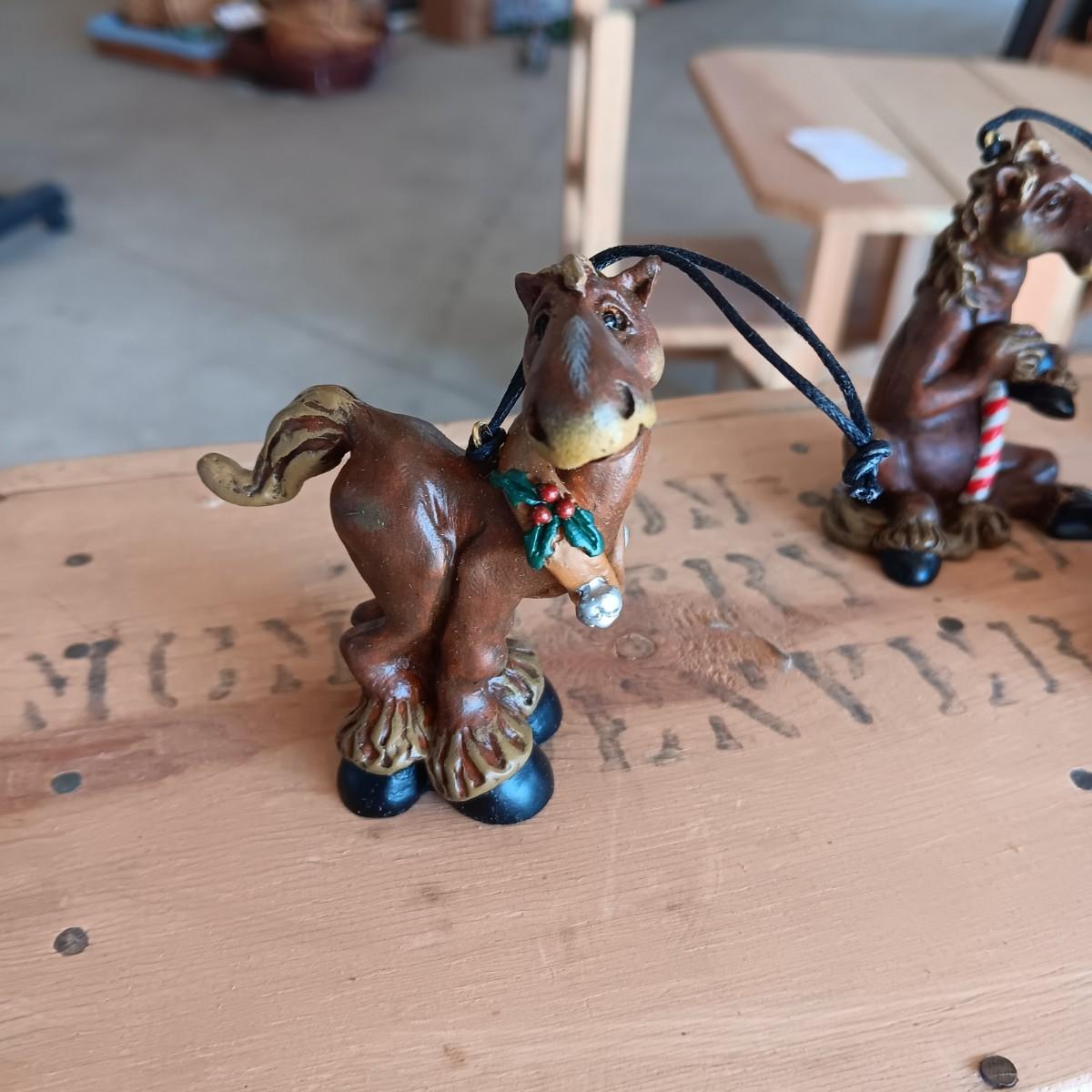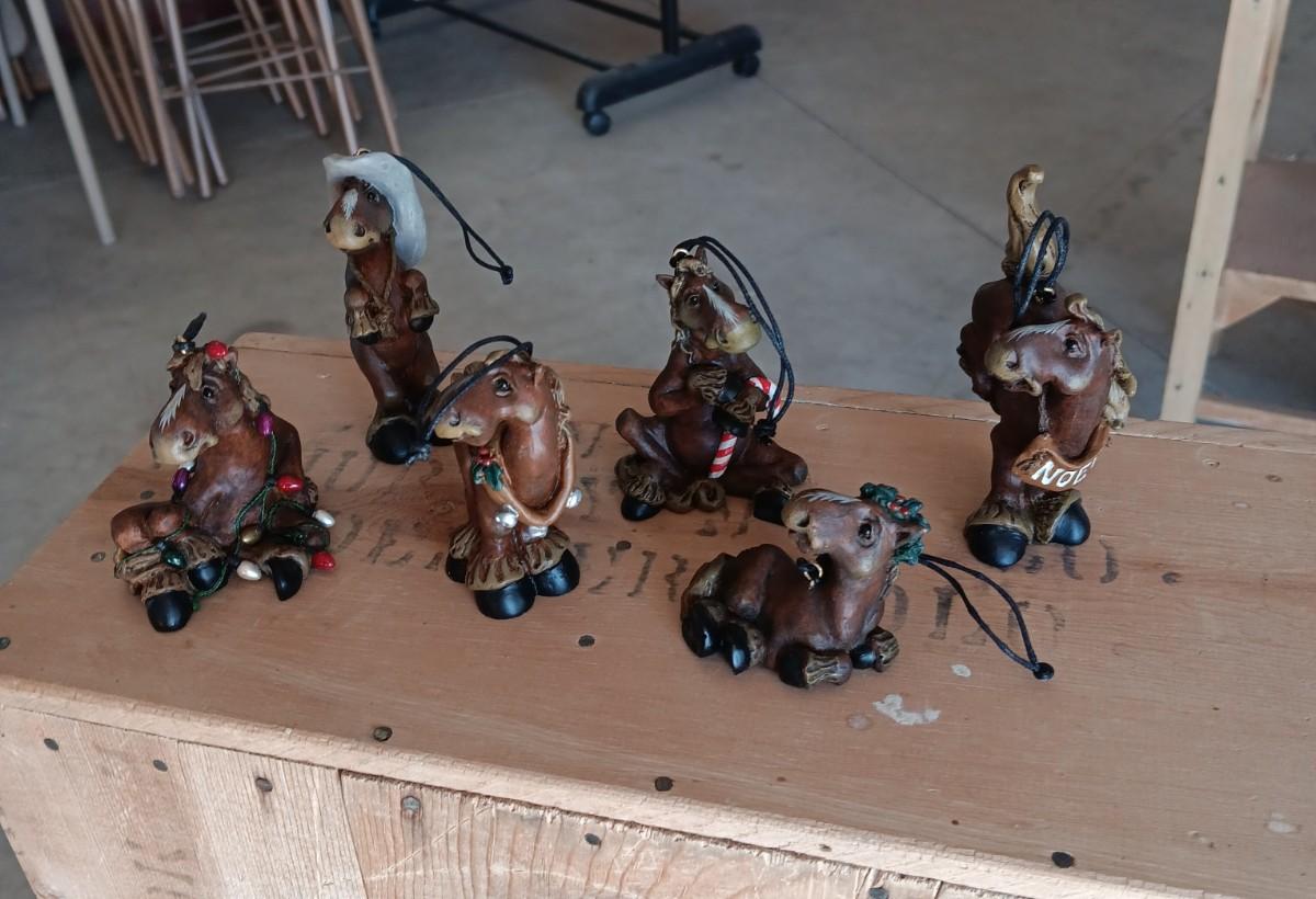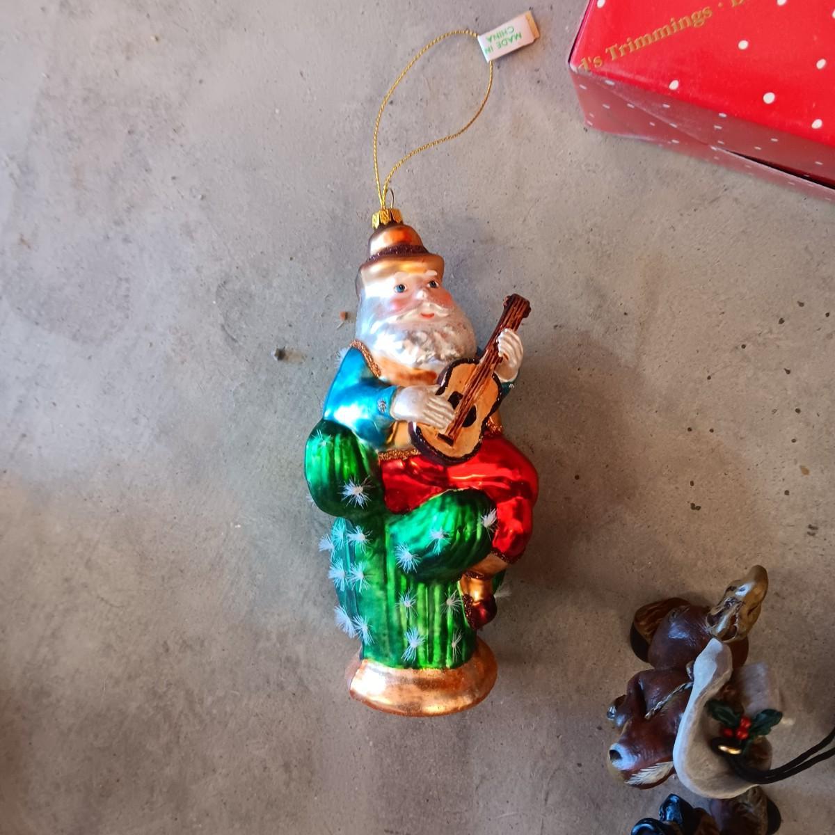 HALLMARK SANTA, DILLARD'S SANTA BOOTS & HANDCRAFTED GOOFY HORSE ORNAMENTS PLUS CHRISTMAS SHAKERS