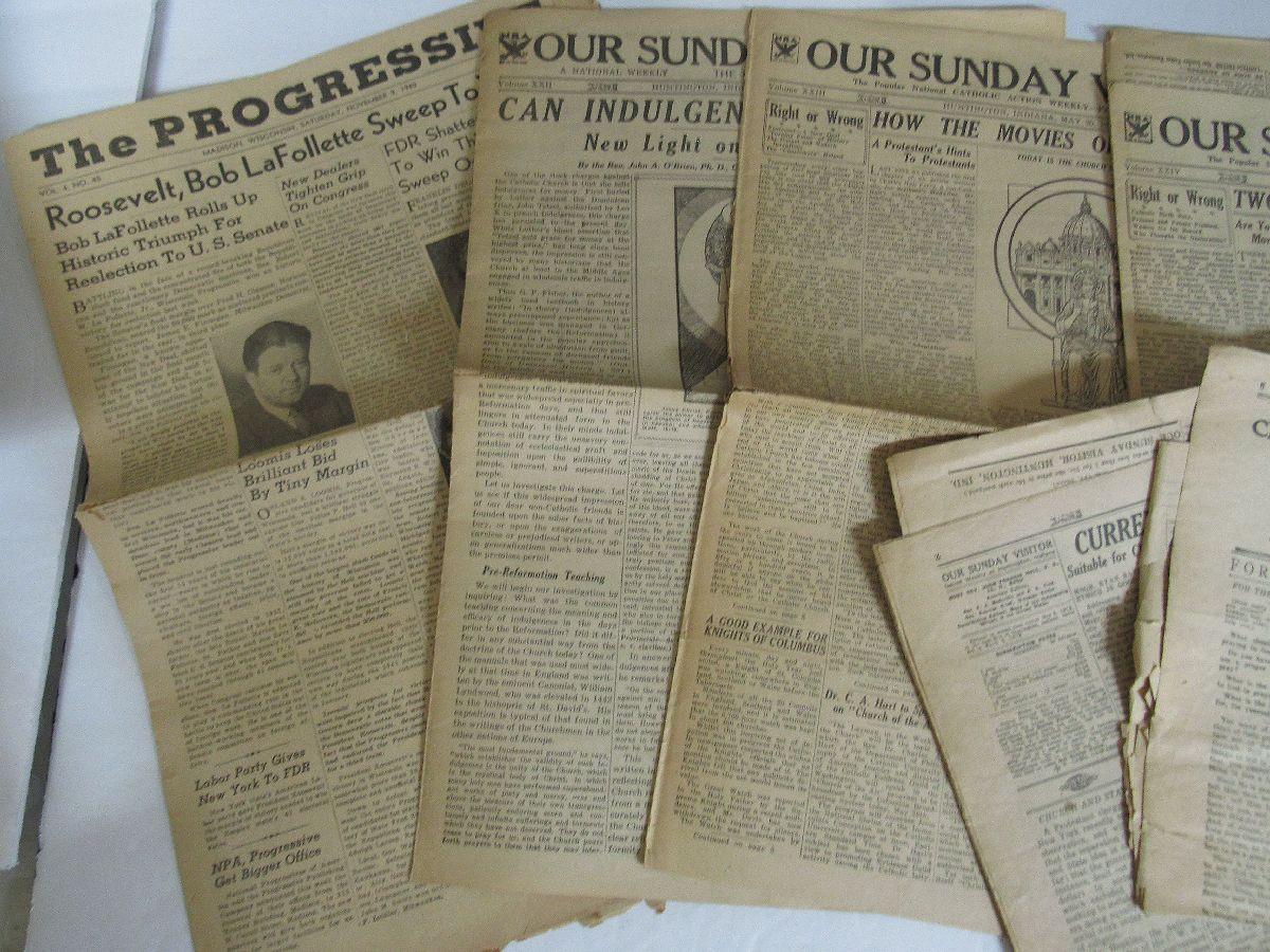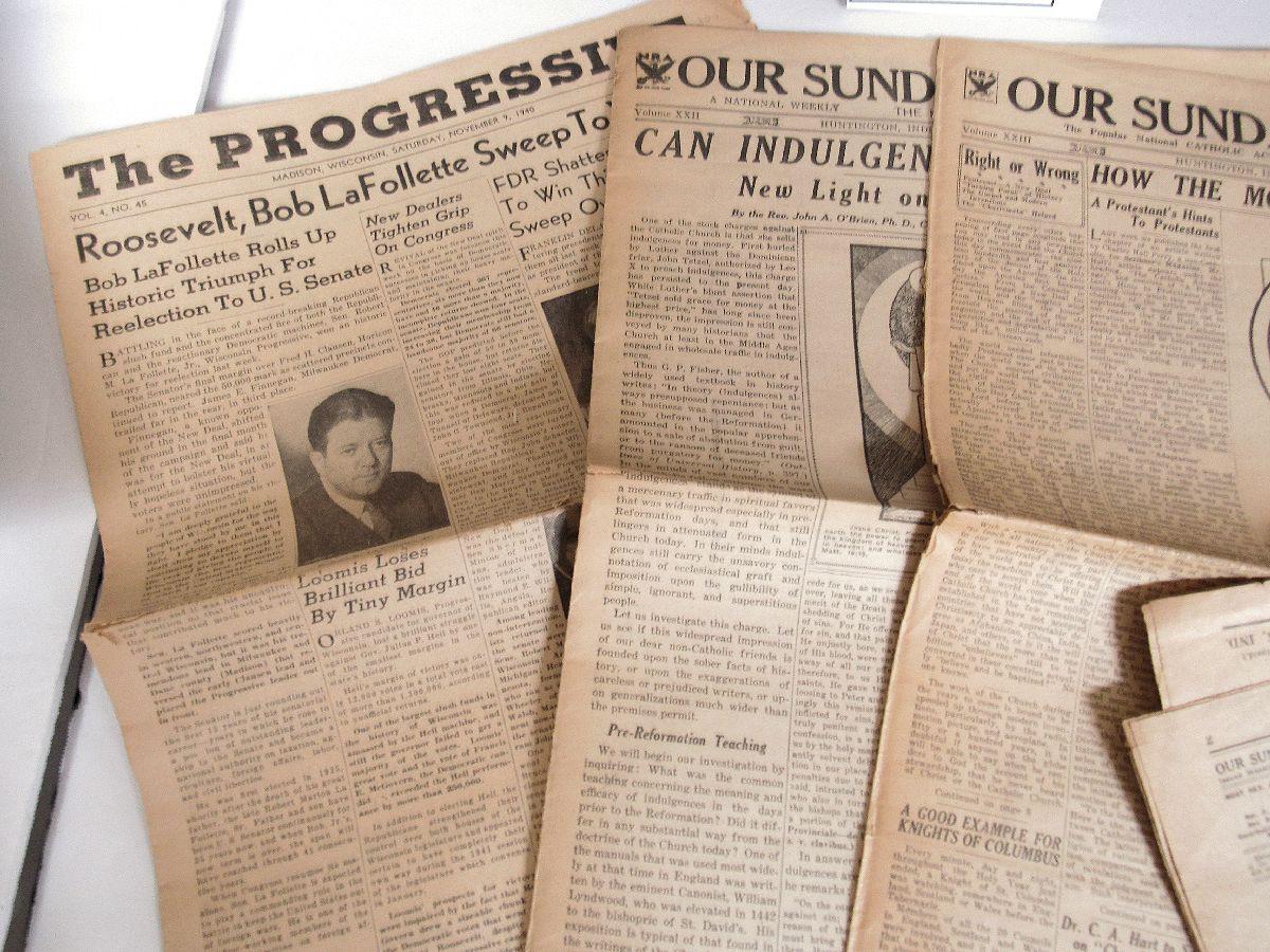 Old Newspapers: the Progressive, 11/9/40; Your Sunday Visitor, 1930s