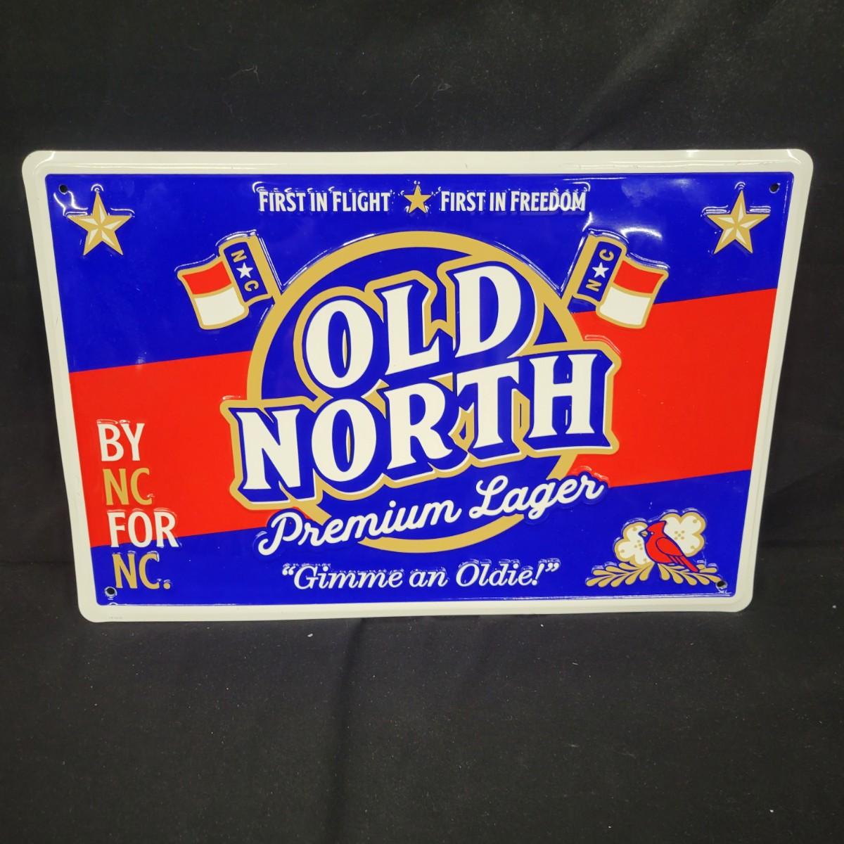 Old North premium Lager metal sign in good condition. There are some minor scratches, see attached pictures. Measures approximately 18" x 12" Shipping available