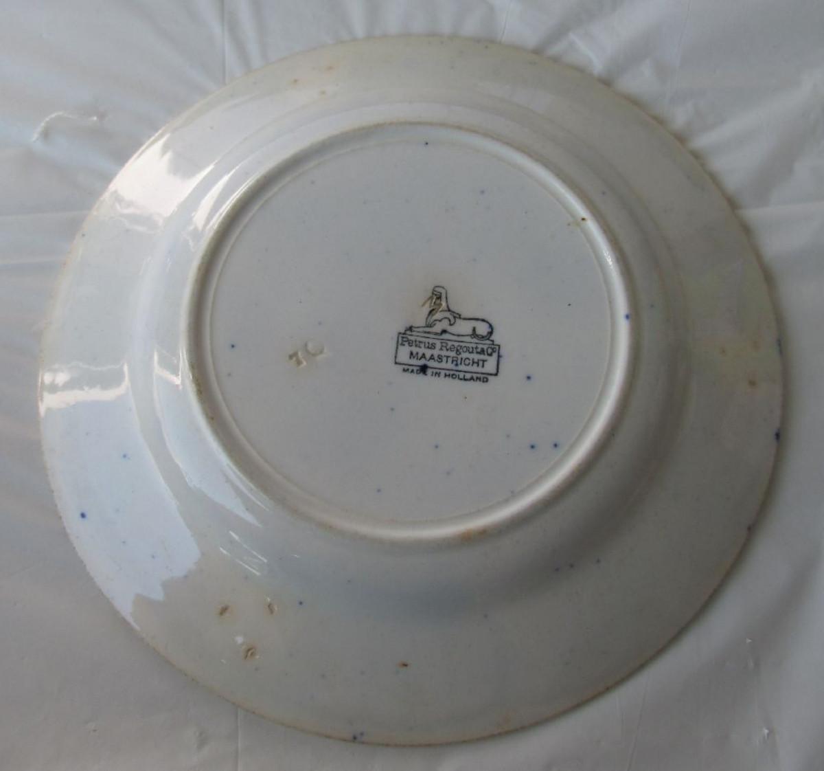 Old Patrus Regout & Co Maastrich Holland Blue Transferware Plate, Marked on Back