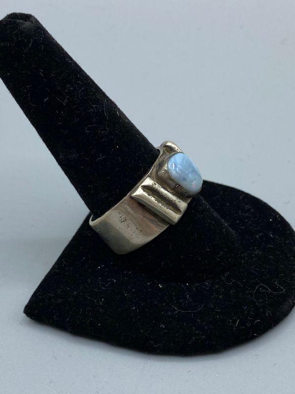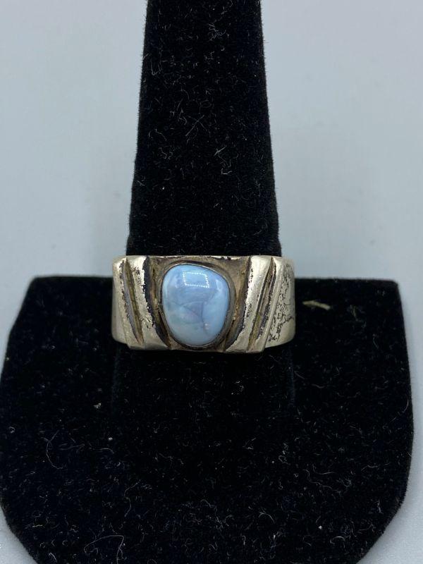 Old Pawn Sterling Silver & Pale Blue Opal Men's Ring