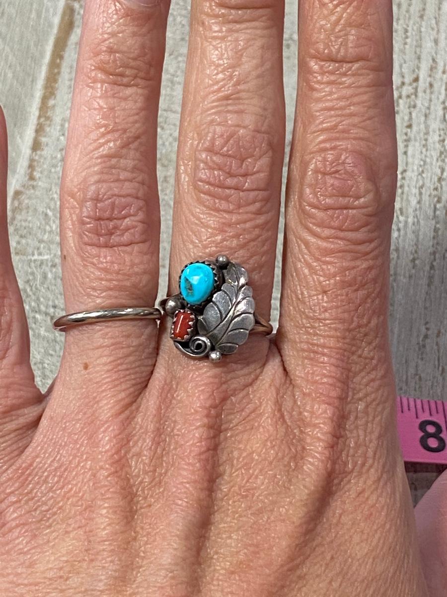 Old Pawn Sterling Silver Turquoise Red Coral Southwestern Navajo Artist Yazzie Hallmarked Ring