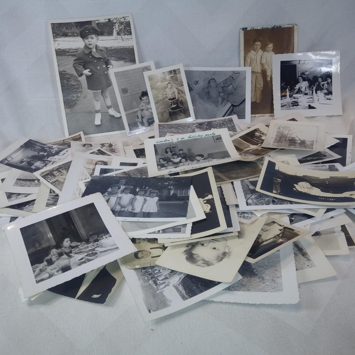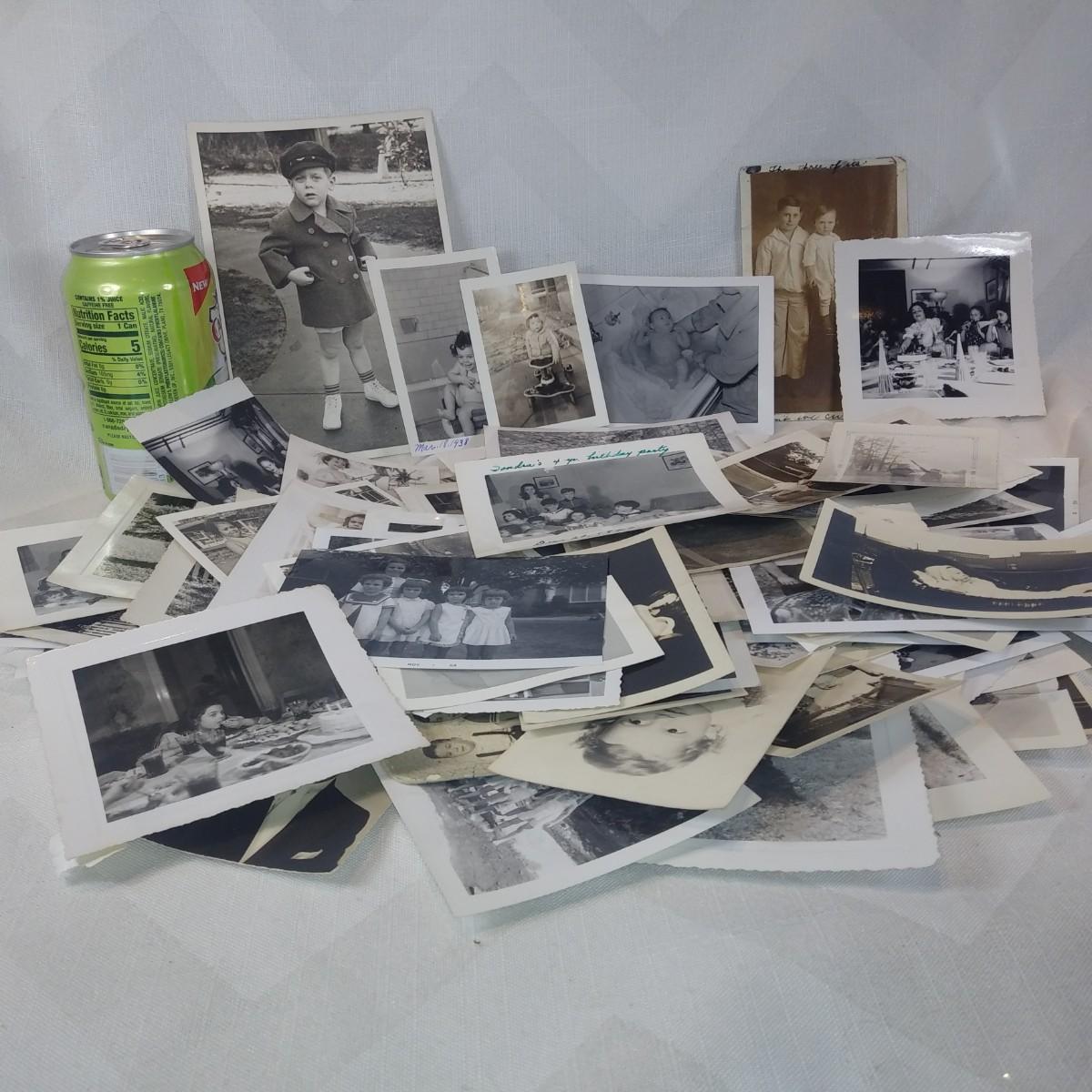 This auction lot is for a grouping of 117 Vintage/Old Photos of Children dating from 1930's to 1960's. Great shots showing vintage toys, clothes and decor. Great for so many uses. Instant family.